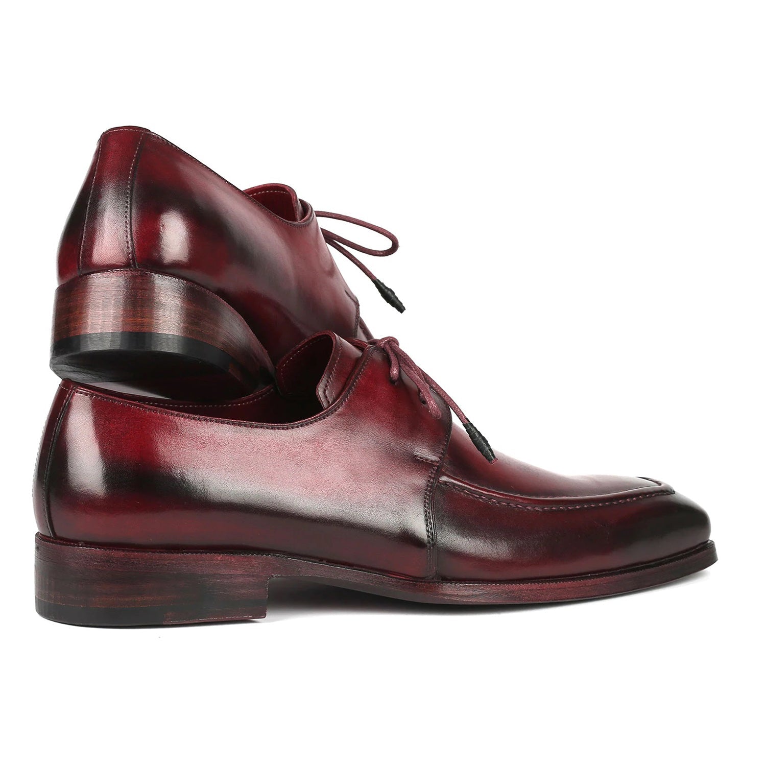 - Bordeaux hand-painted calfskin upper.