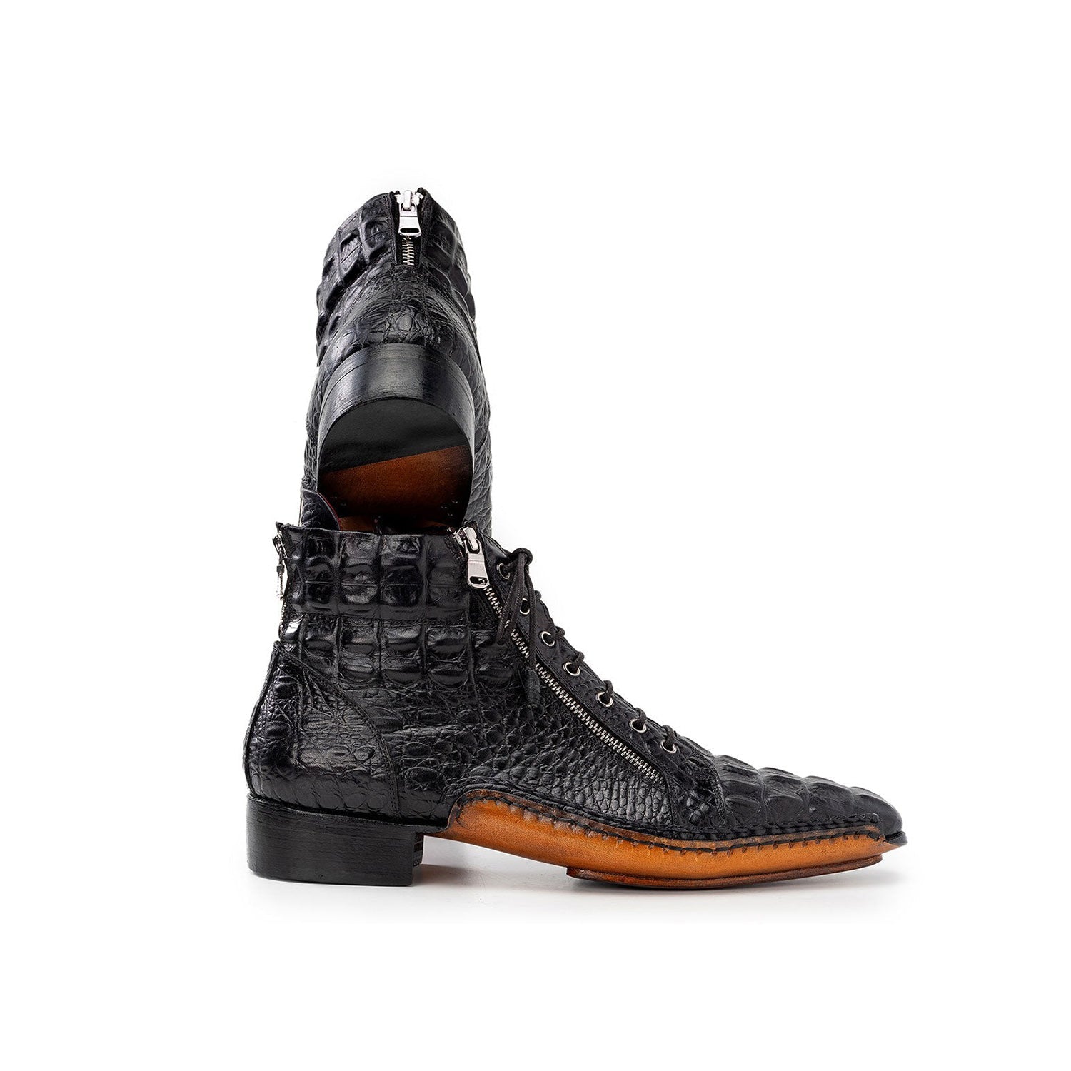- Paul Parkman 88AP Men's Shoes Crocodile Print Calf-Skin Leather Zipper Boot (PM6462)
