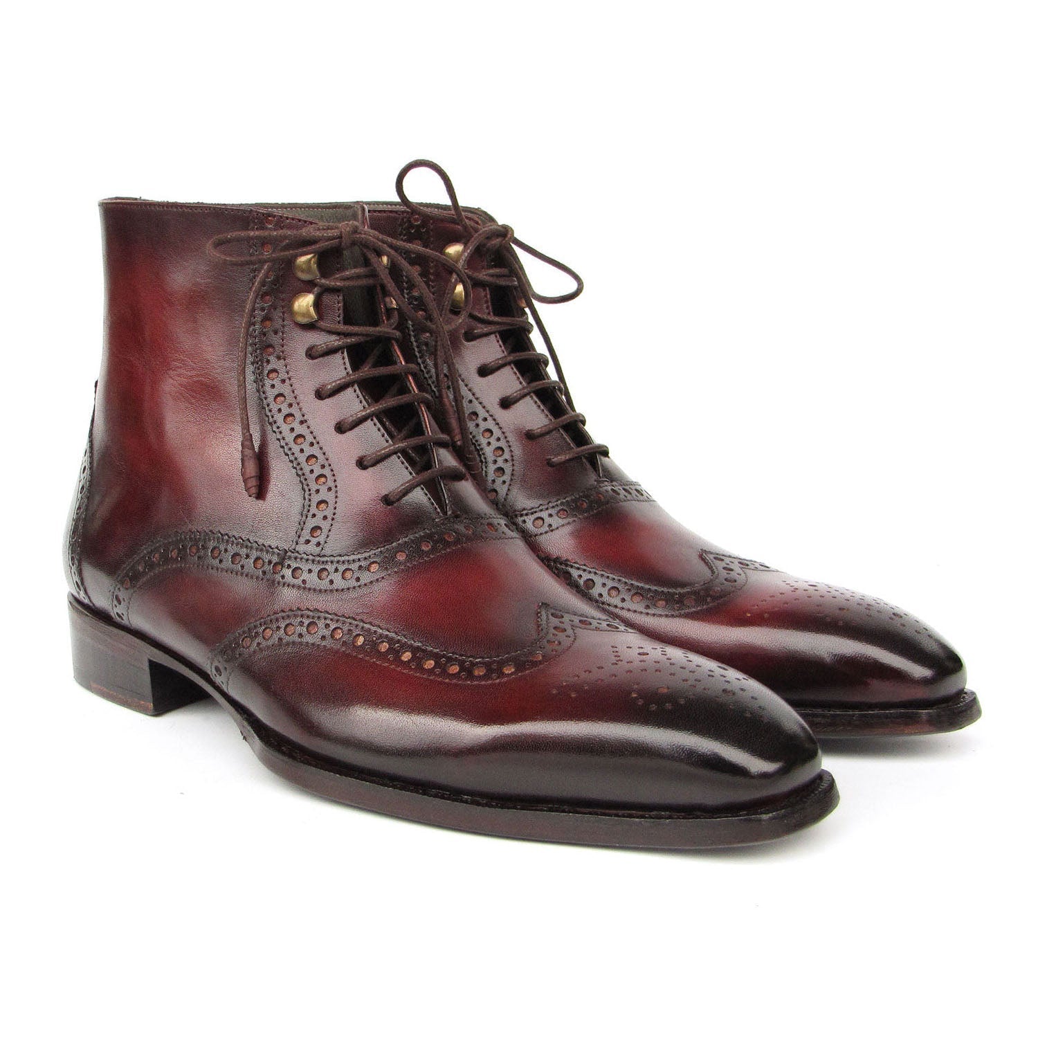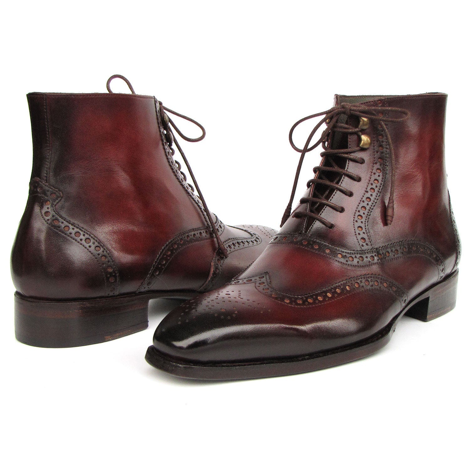 - Paul Parkman BT4861-BRD Men's Shoes Brown Burnished Leather Goodyear Welted Wingtip Boots (PM6407)