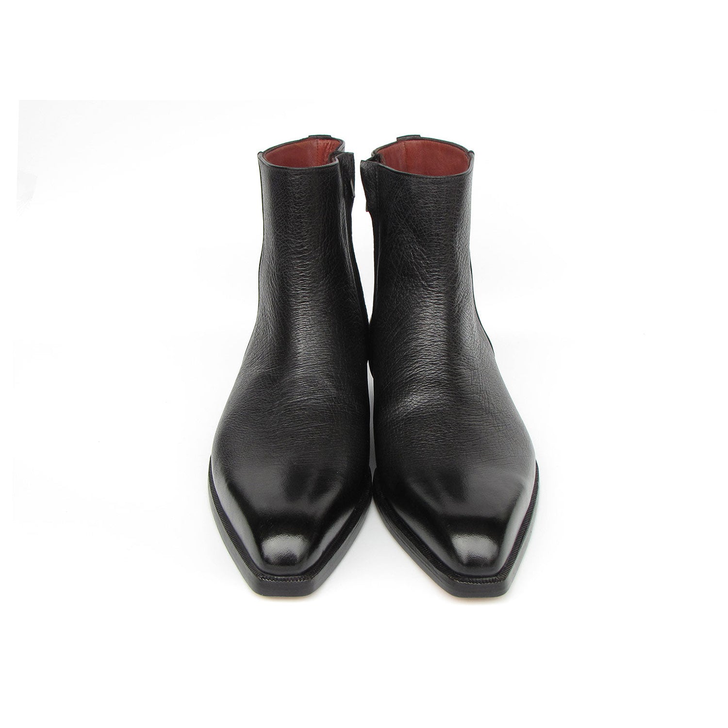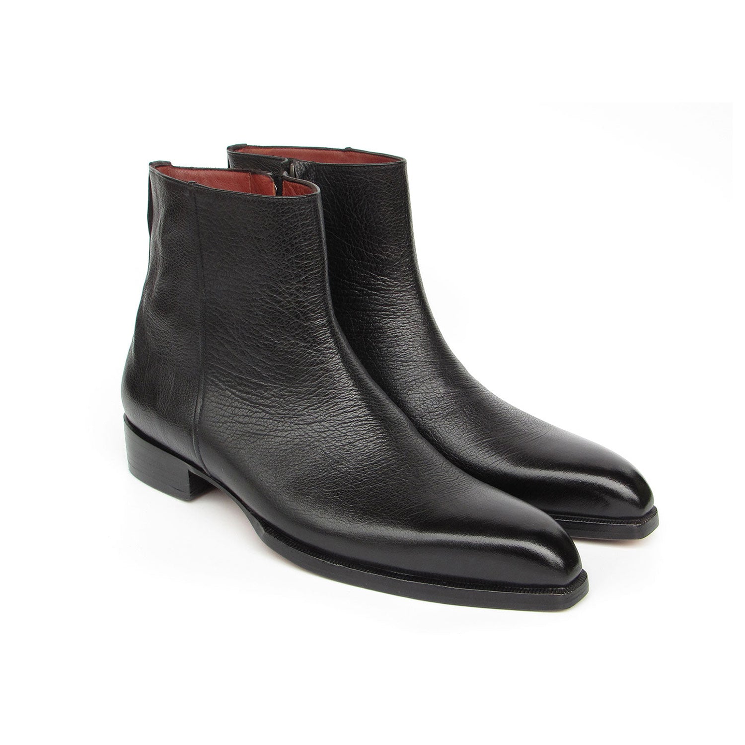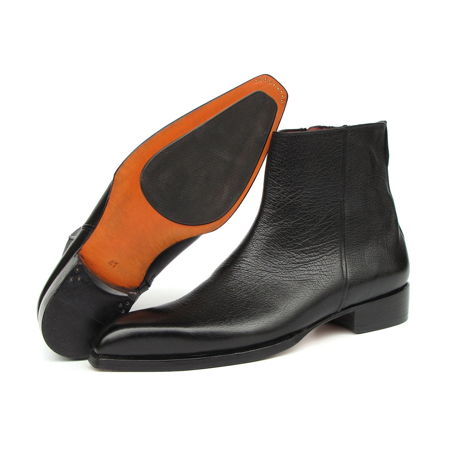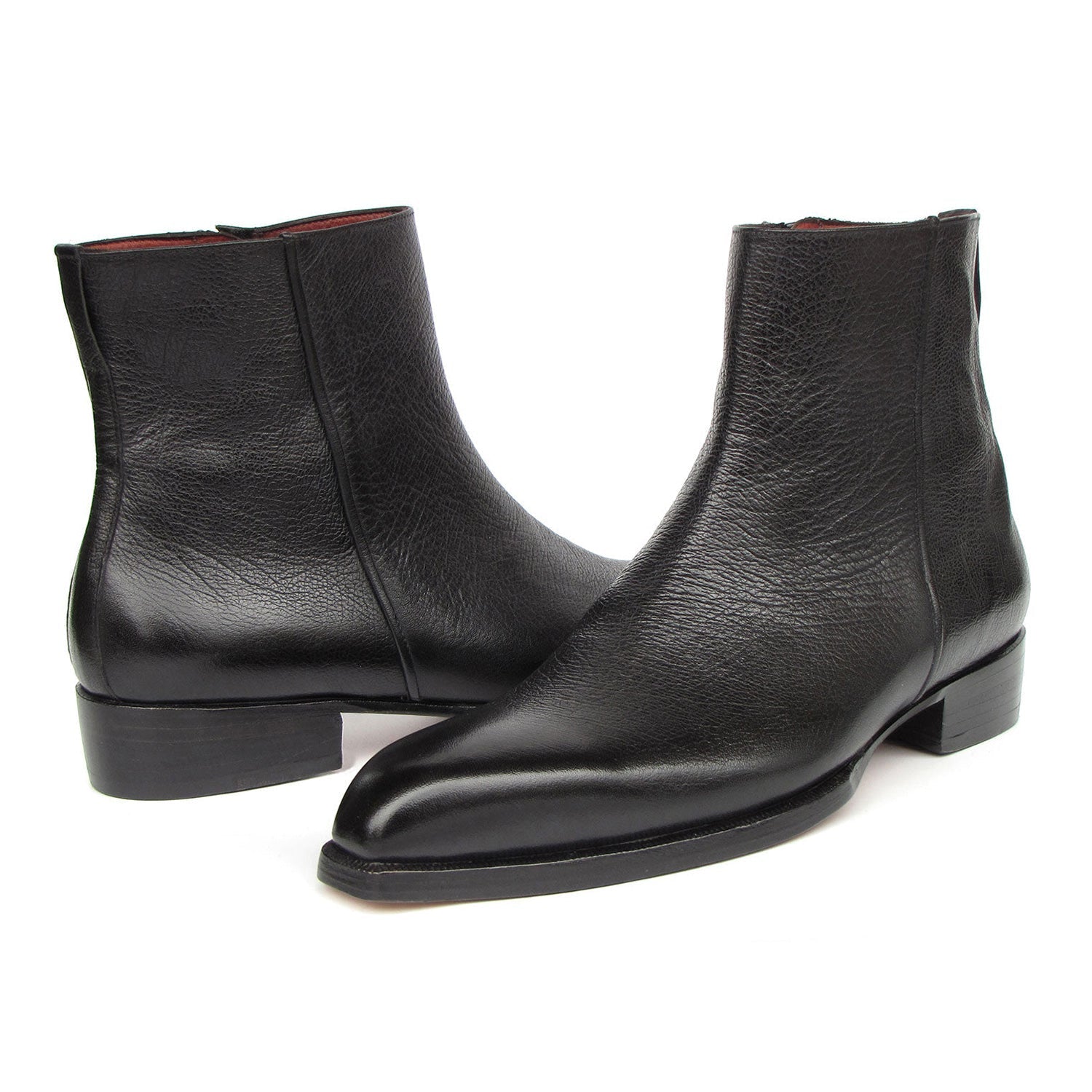 - Paul Parkman BT6499-BLK Men's Shoes Black Floater Leather Side Zipper Boots (PM6392)