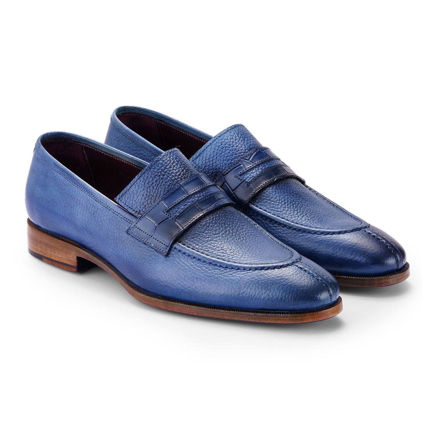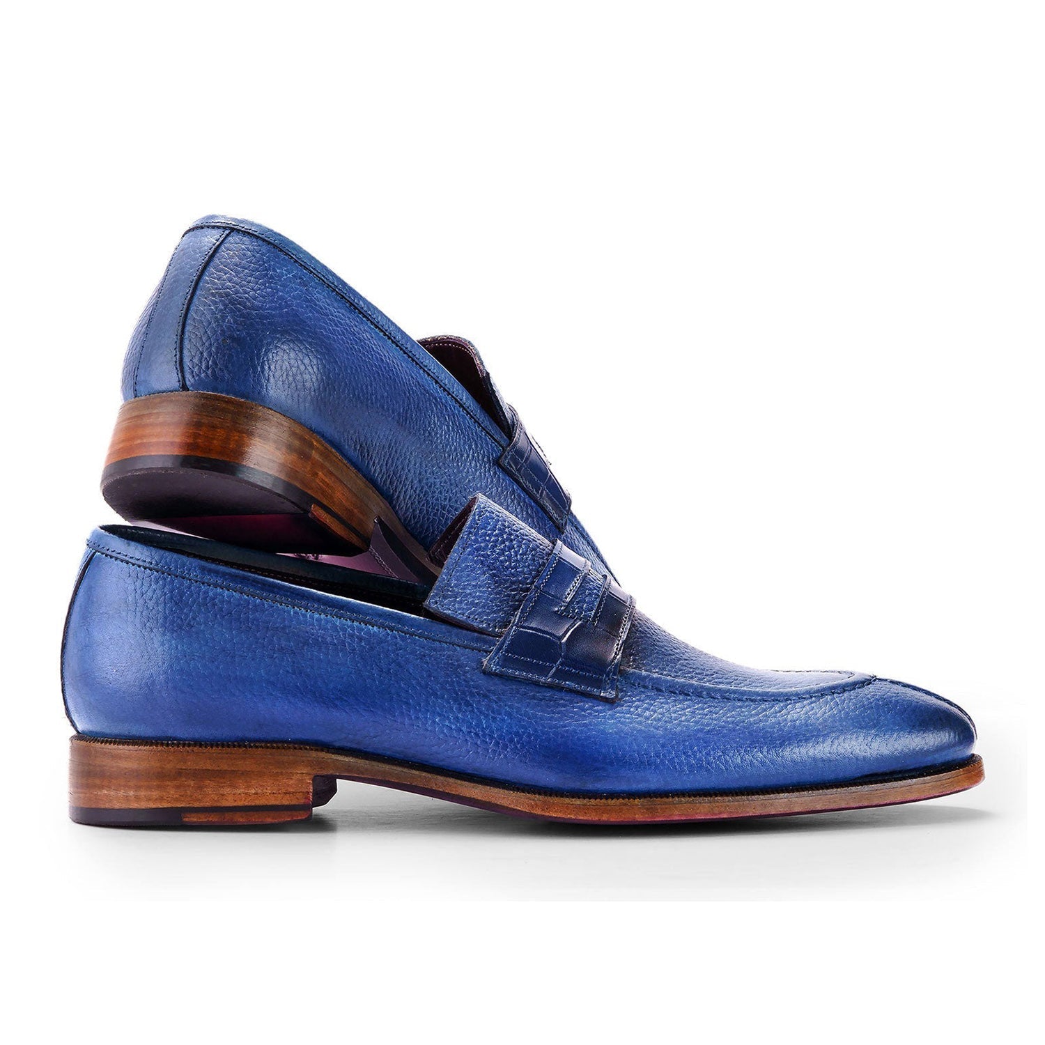 - Paul Parkman Men's Shoes Full Grain Calf-Skin Leather Split-Toe Penny Loafers (PM6443)