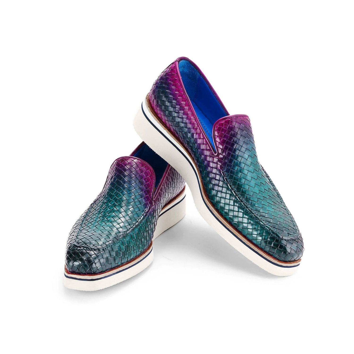 • Paul Parkman 186-WN Men's Shoes Woven Calf-Skin Leather Casual Loafers (PM6434)