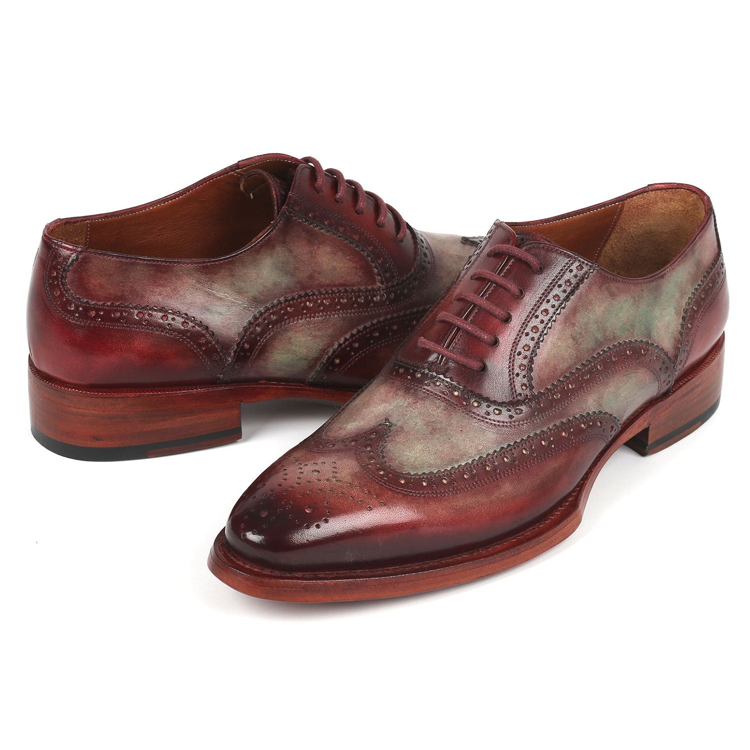 - Paul Parkman PP22GB62 Men's Shoes Green & Bordeaux Calf-Skin Leather Goodyear Welted Dress Wingtip Oxfords (PM6325)