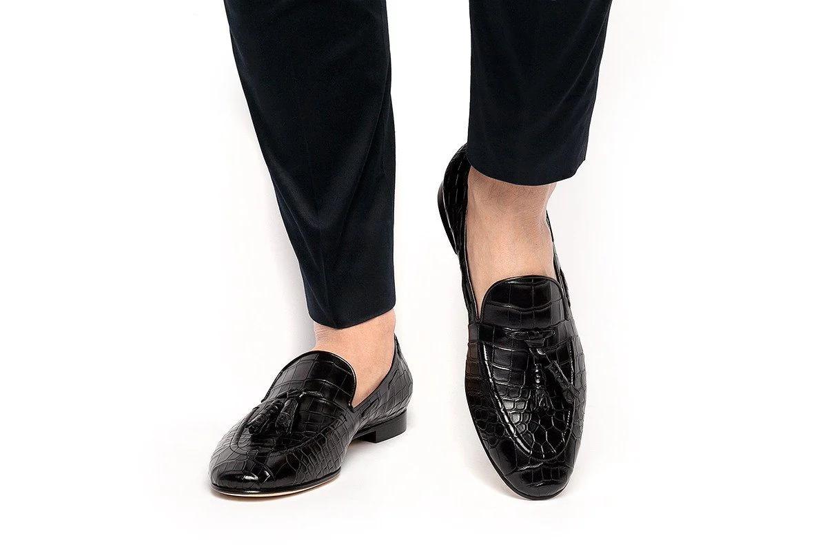 SUPERGLAMOUROUS Philippe Men's Shoes Crocodile Skin Slip-On Tassels Loafer (SPGM1356)