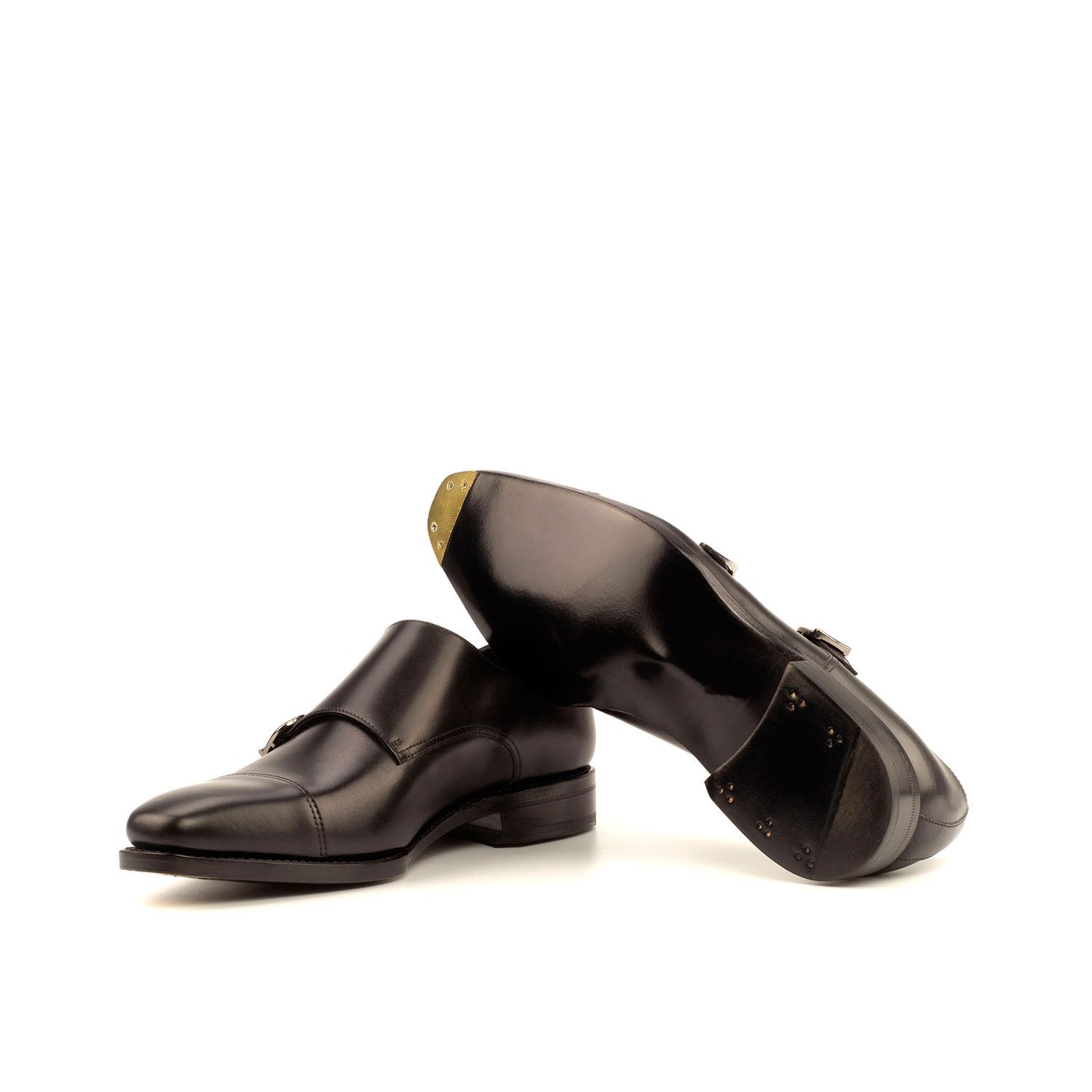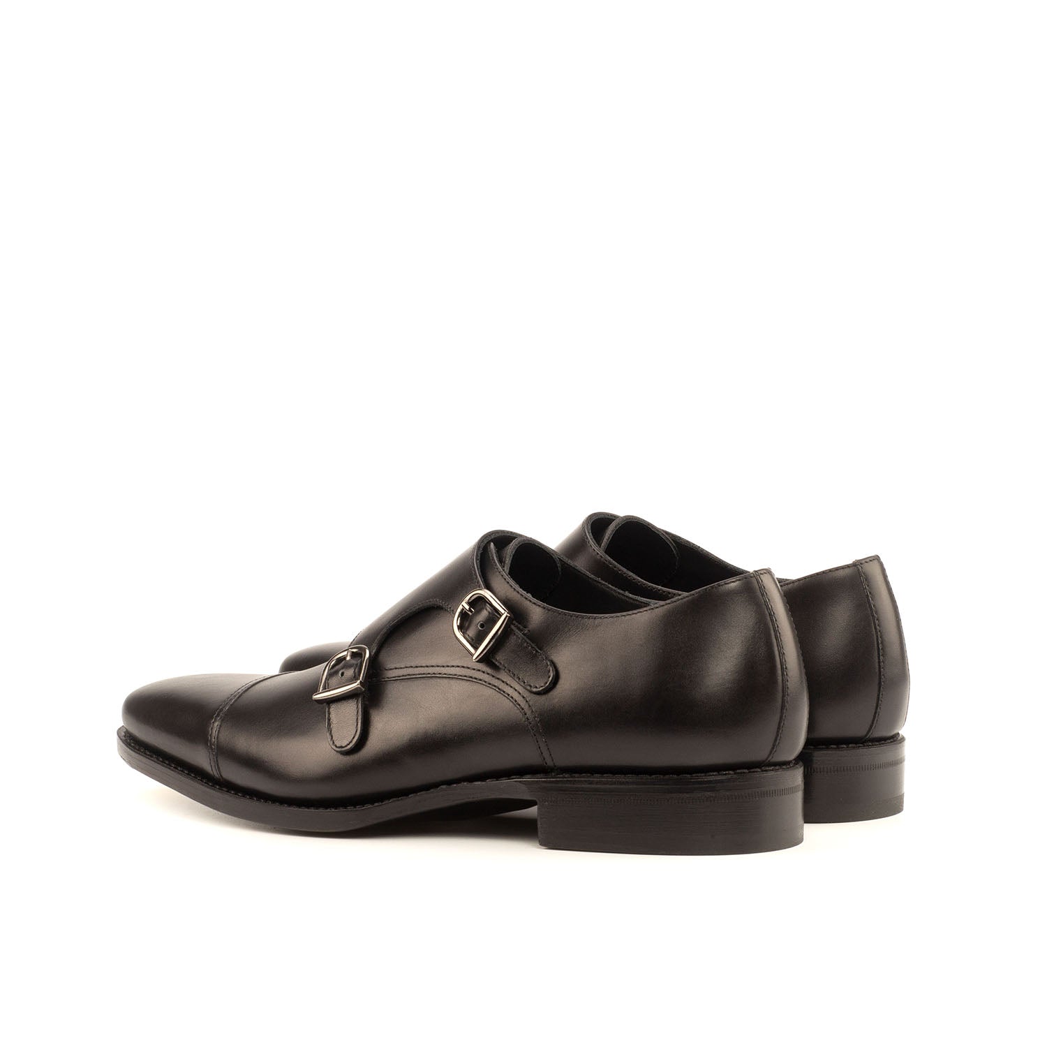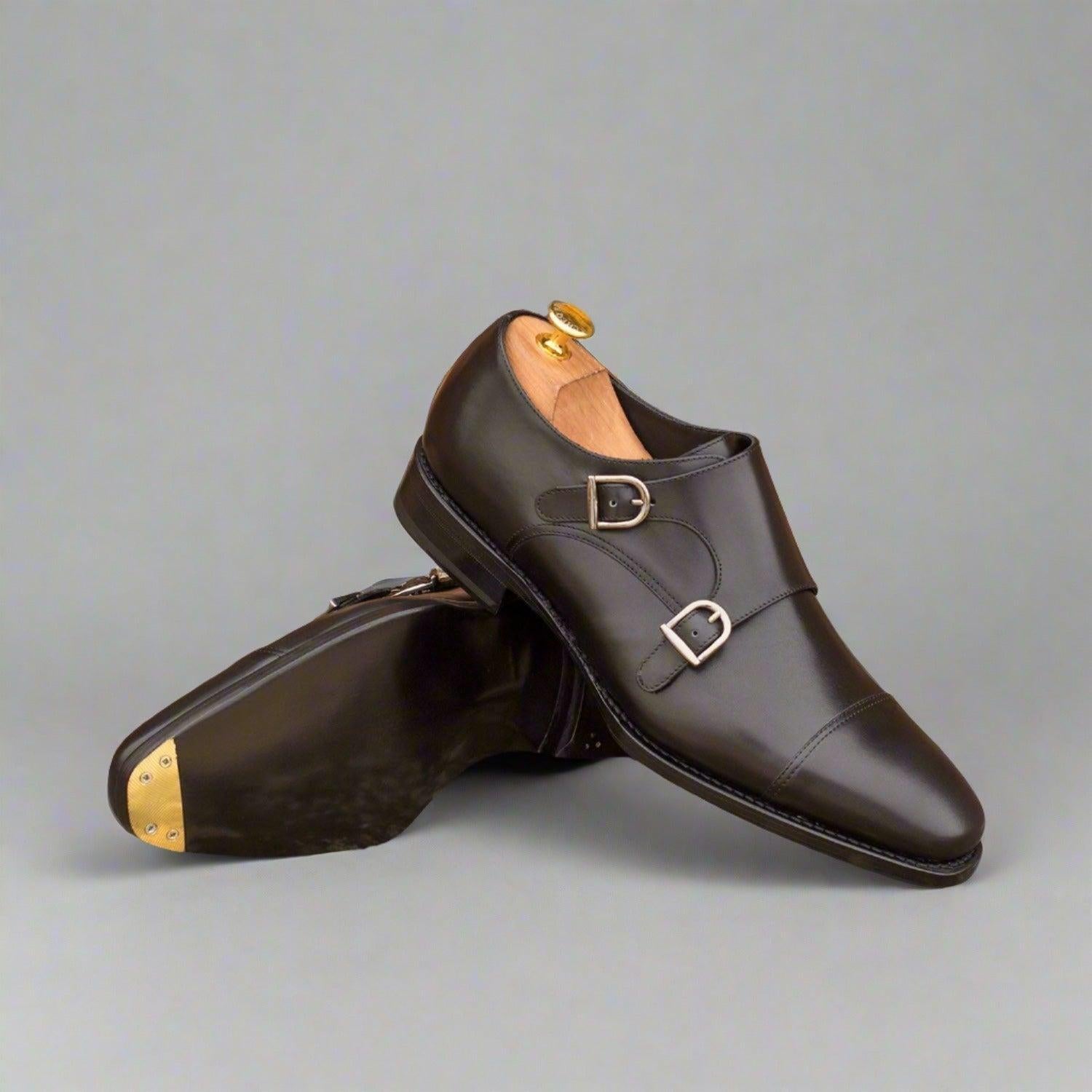 - Ambrogio Handmade Custom Men's Shoes Black Calf-Skin Leather Monk-Straps Loafers (AMB2006)