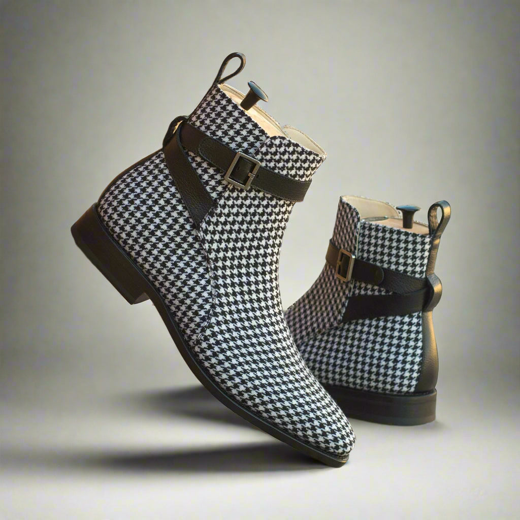 - Material: Houndstooth Sartorial Fabric / Full Grain Leather