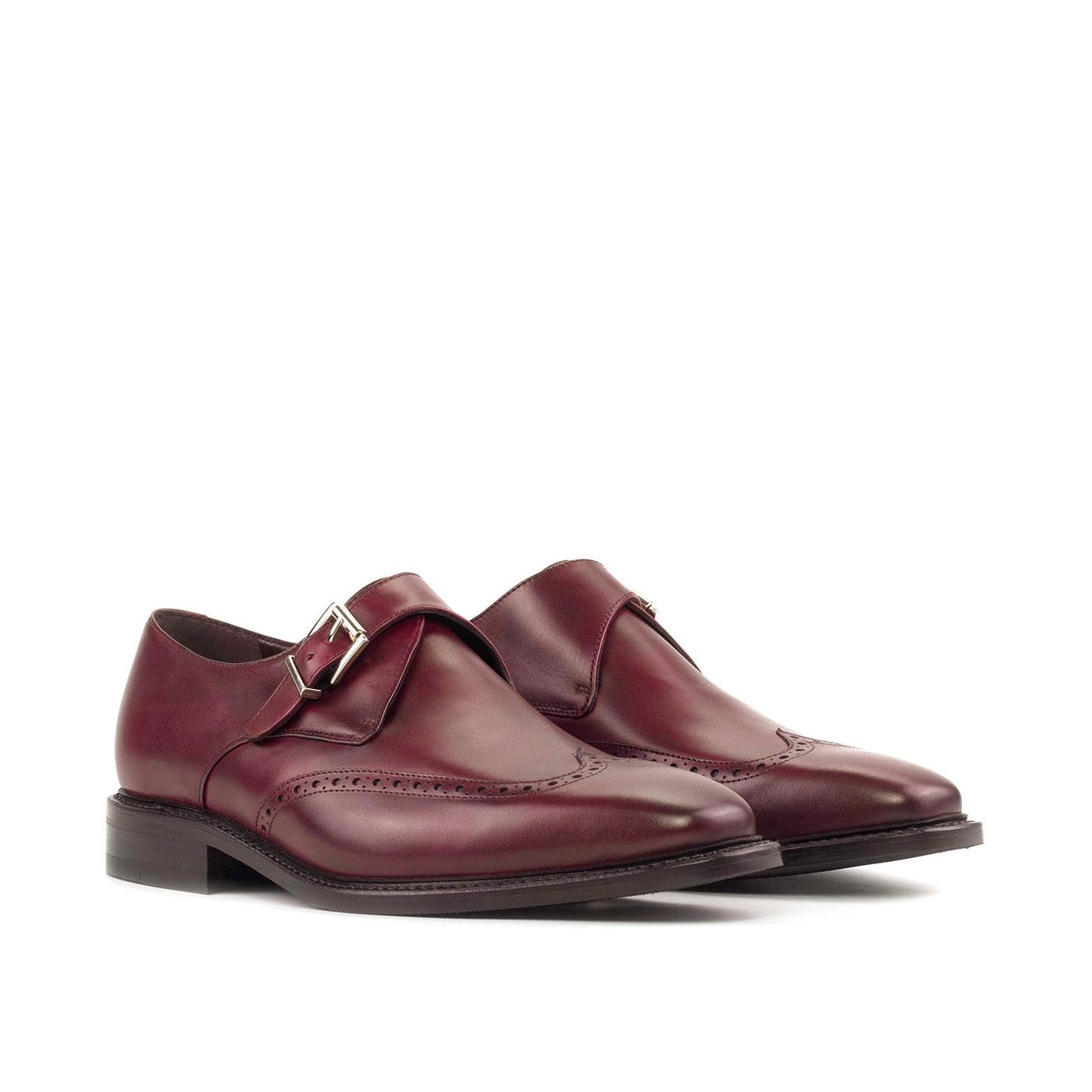 - Ambrogio Handmade Men's Shoes Burgundy Calf-Skin Leather Single Monk-Strap Loafers (AMB2478)