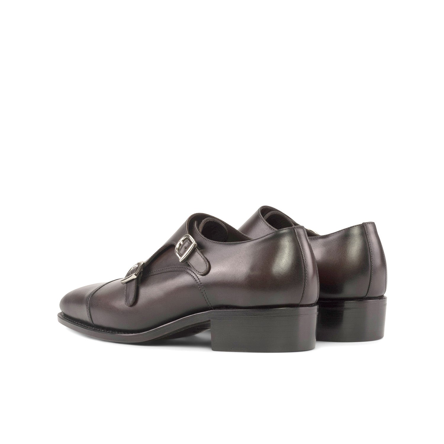 - Ambrogio Handmade Men's Shoes Dark Brown Calf-Skin Leather Monk-Straps Loafers (AMB2296)