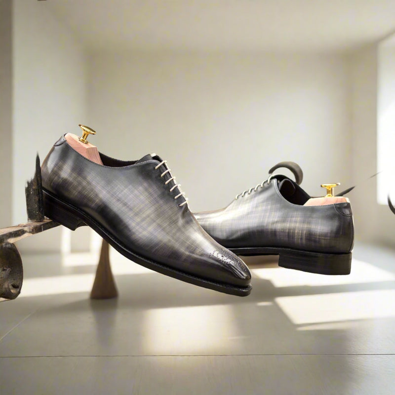 • Ambrogio Handmade Men's Shoes Gray Patina Leather Wholecut Oxfords (AMB2345)