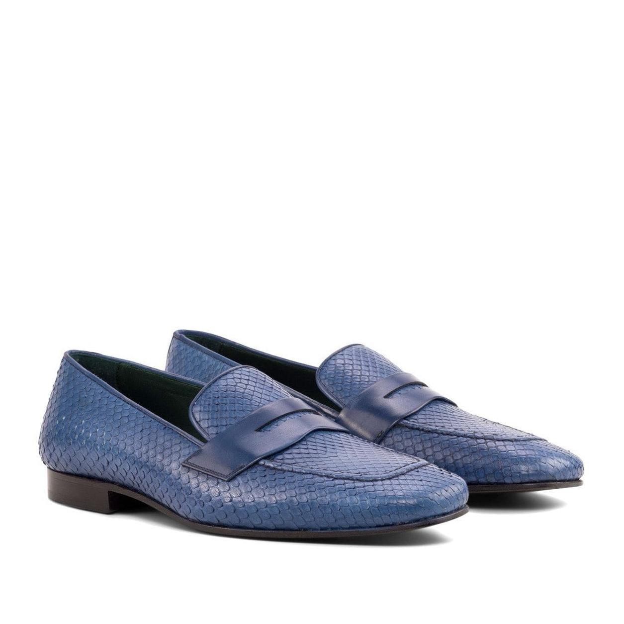- Ambrogio Handmade Men's Shoes Navy Python / Calf-Skin Leather Drake Penny Loafers (AMB2266)