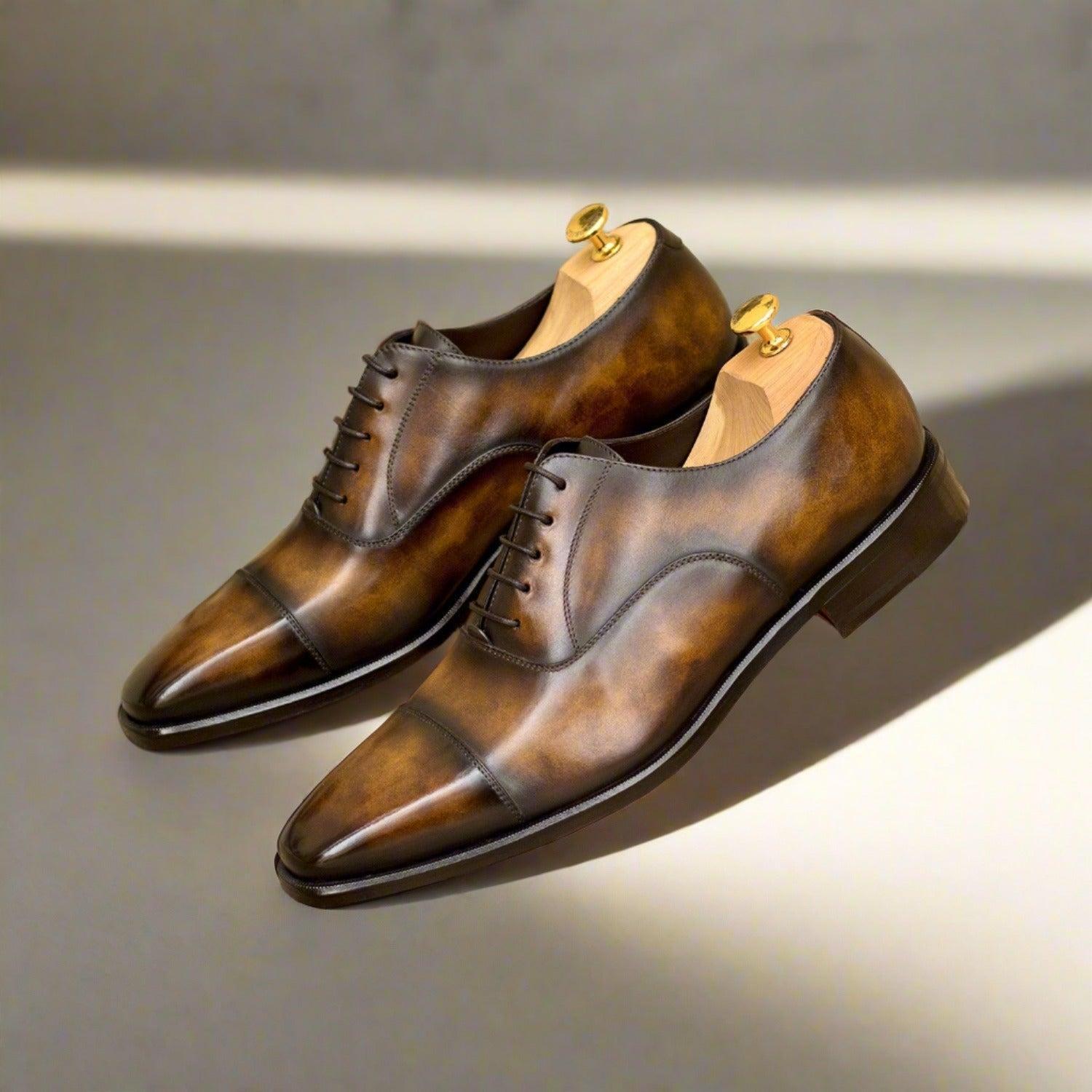 - Ambrogio Handmade Men's Shoes Tobacco Patina Leather Oxfords (AMB2344)