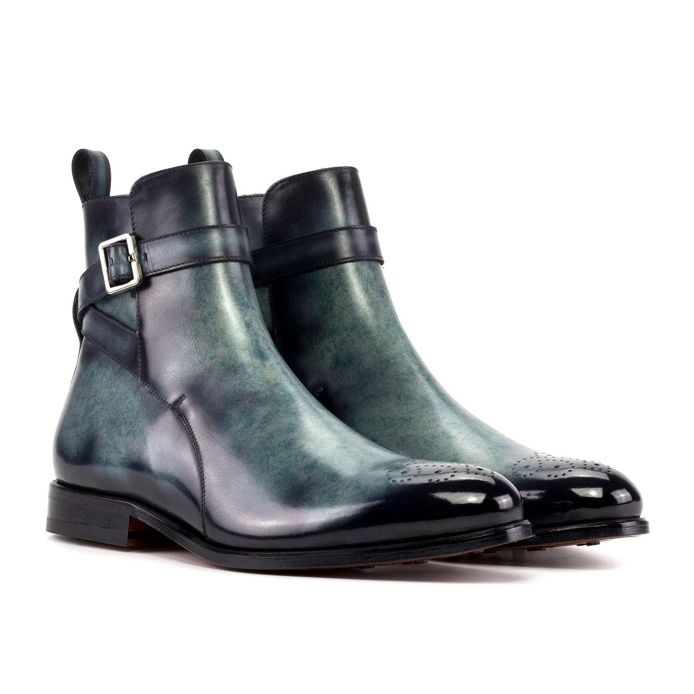 - Ambrogio Handmade Men's Shoes Turquoise Patina Leather Jodhpur Boots (AMB2430)