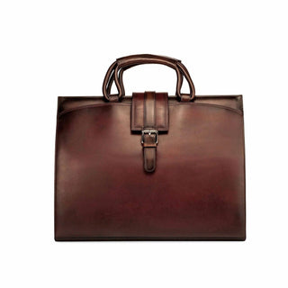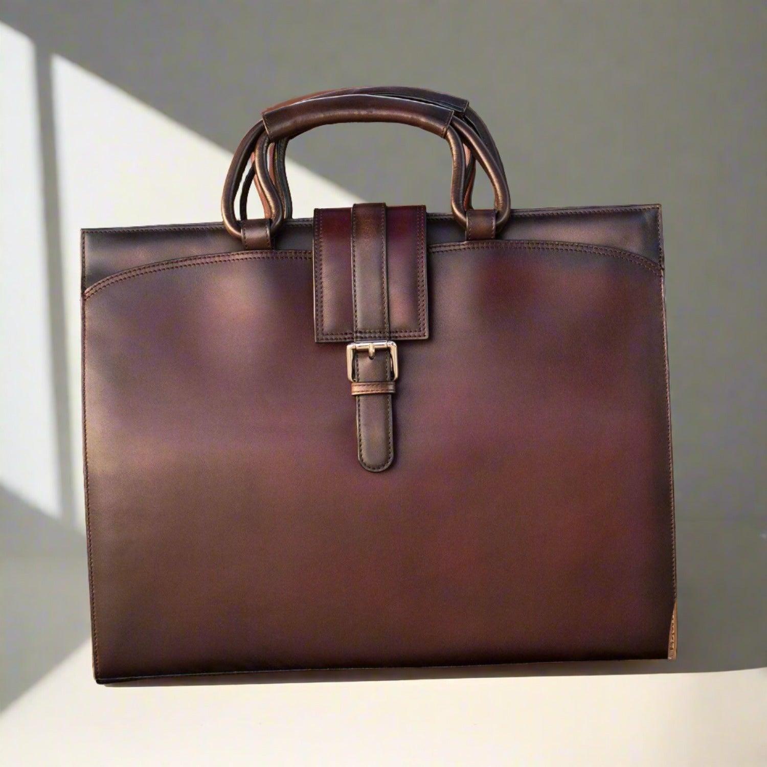 Ambrogio Men's Bag Burgundy & Brown Calf-Skin Leather Brief Case (AMBH1001)