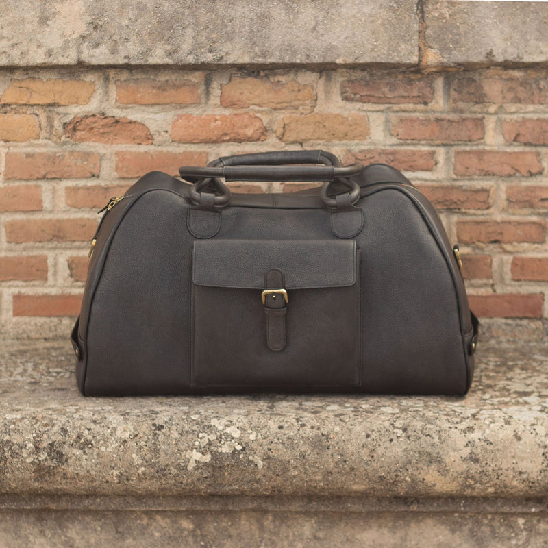 - Ambrogio 3146 Men's Bag Gray & Black Full Grain Leather Travel Duffle Bag (AMBH1017)