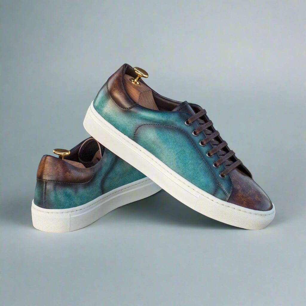 - Ambrogio 3834 Men's Shoes Brown / Turquoise Patina Leather Casual Trainer Sneakers (AMB1133)