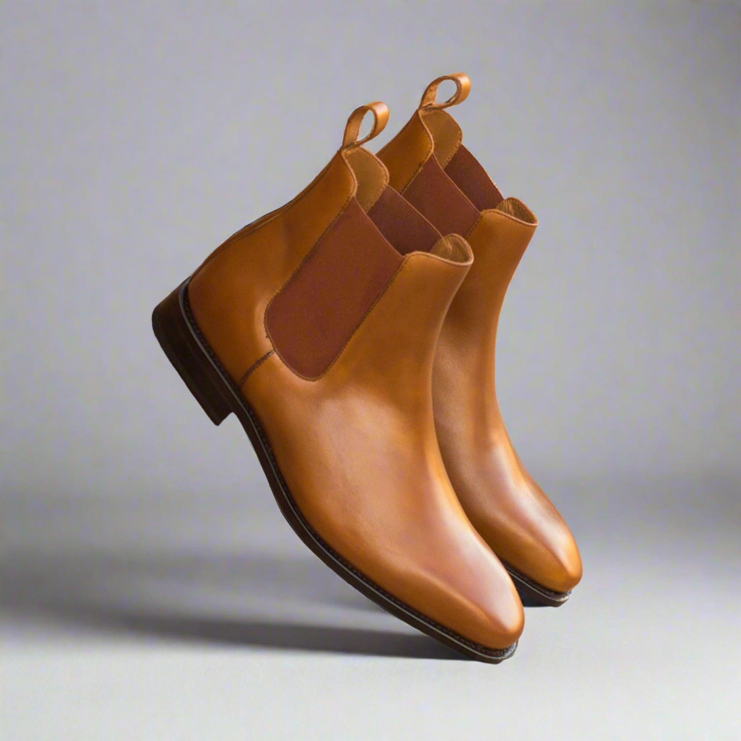 - Ambrogio 3736 Men's Shoes Cognac Calf-Skin Leather Chelsea Boots (AMB1020)