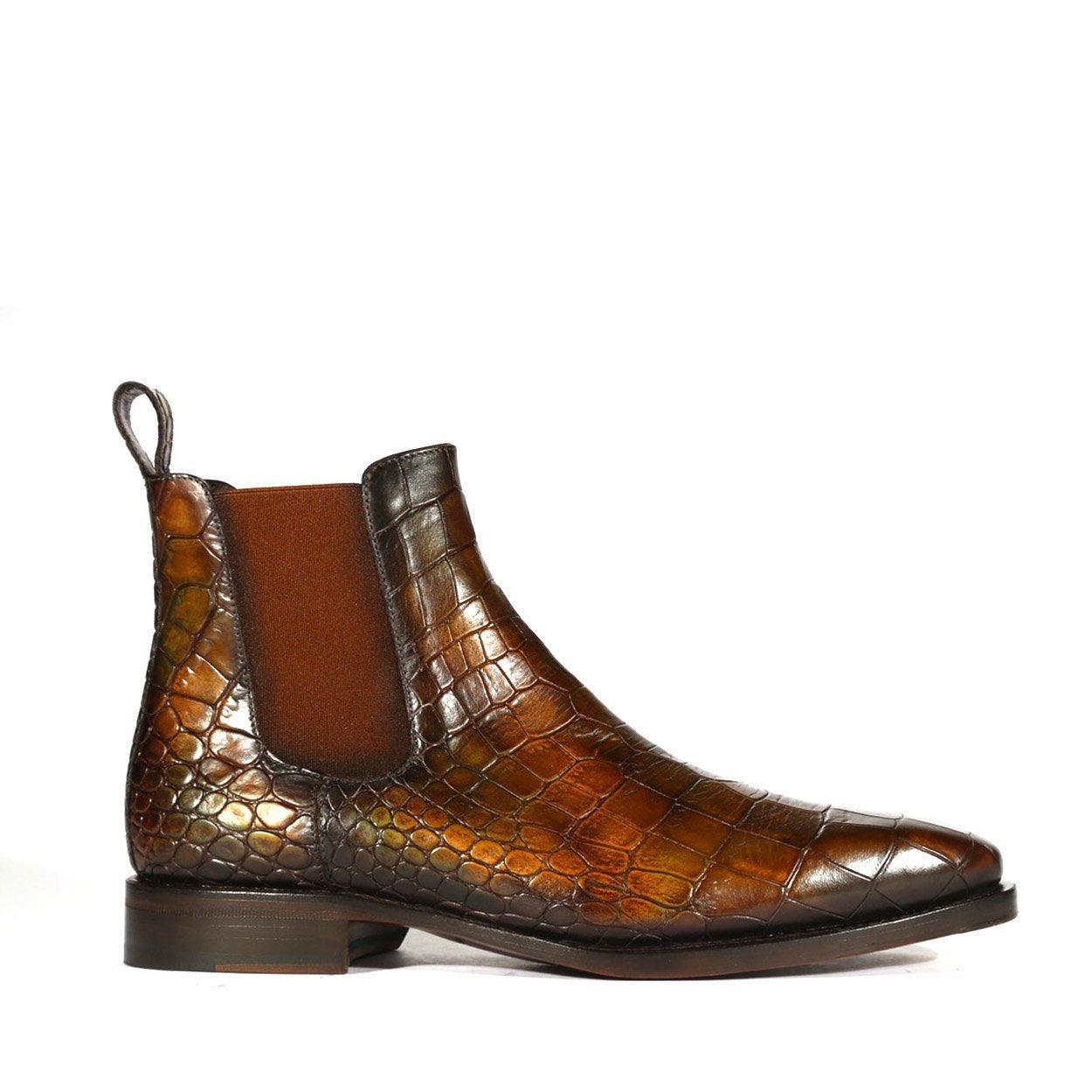 - Ambrogio Men's Shoes Forest Green Crocodile Print / Cairo Patina Leather Chelsea Boots (AMB1639)
