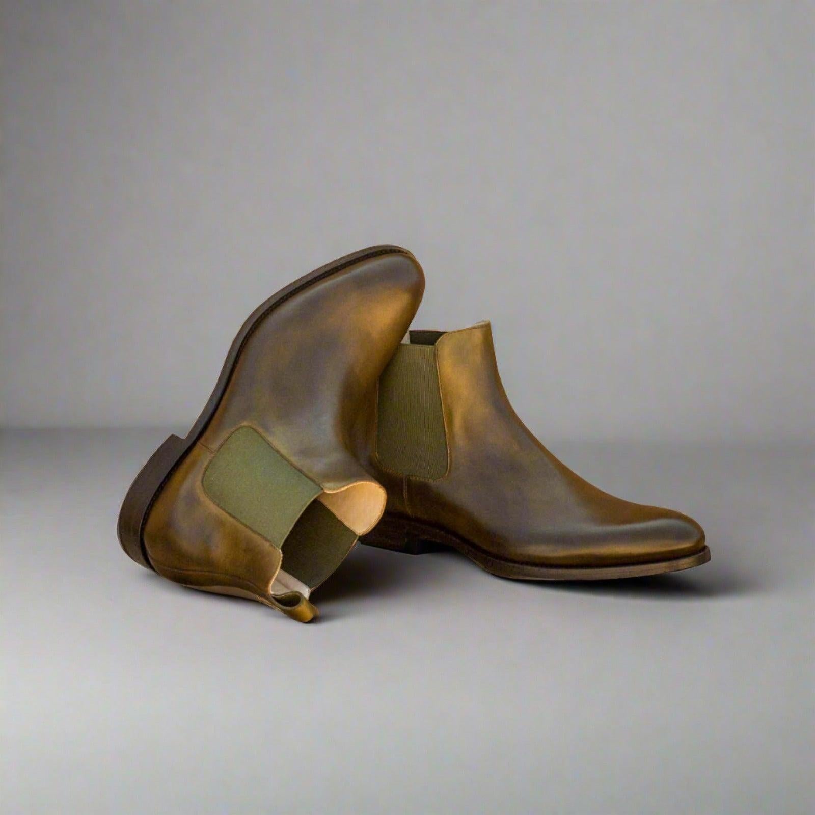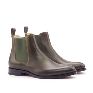 - Ambrogio 3009 Men's Shoes Green Olive Calf-Skin Leather Chelsea Boots (AMB1023)