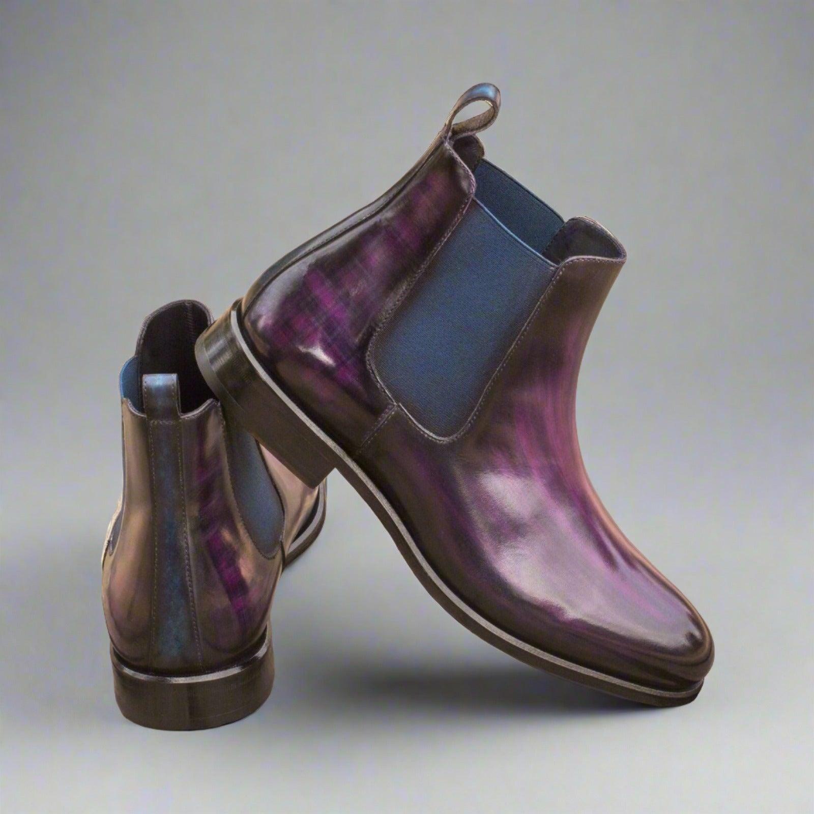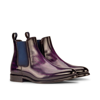 - Ambrogio 3784 Men's Shoes Purple Crust Patina Leather Chelsea Boots (AMB1035)