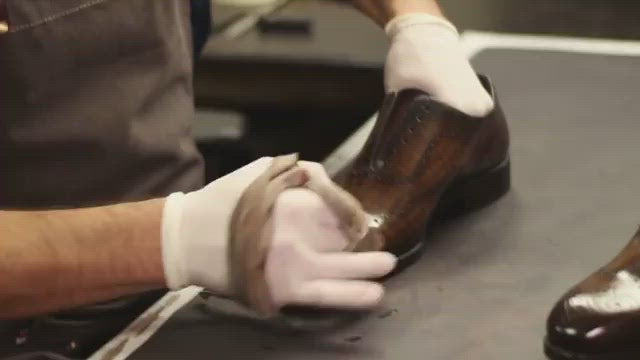 The artistry behind this masterpiece is achieved through a technique known as *Anticatura*—the Italian term for antique finishing. This revered method, mastered by Italian and French shoemaking maestros, transforms each shoe into a one-of-a-kind creation. In the skilled hands of an antique finisher, the leather upper becomes a canvas for craftsmanship. The *Anticatura* process involves meticulous hand-dyeing, requiring 8 to 10 hours per pair to develop a rich, nuanced patina that exudes timeless elegance and depth. Each finish is a testament to tradition, skill, and the pursuit of perfection.
