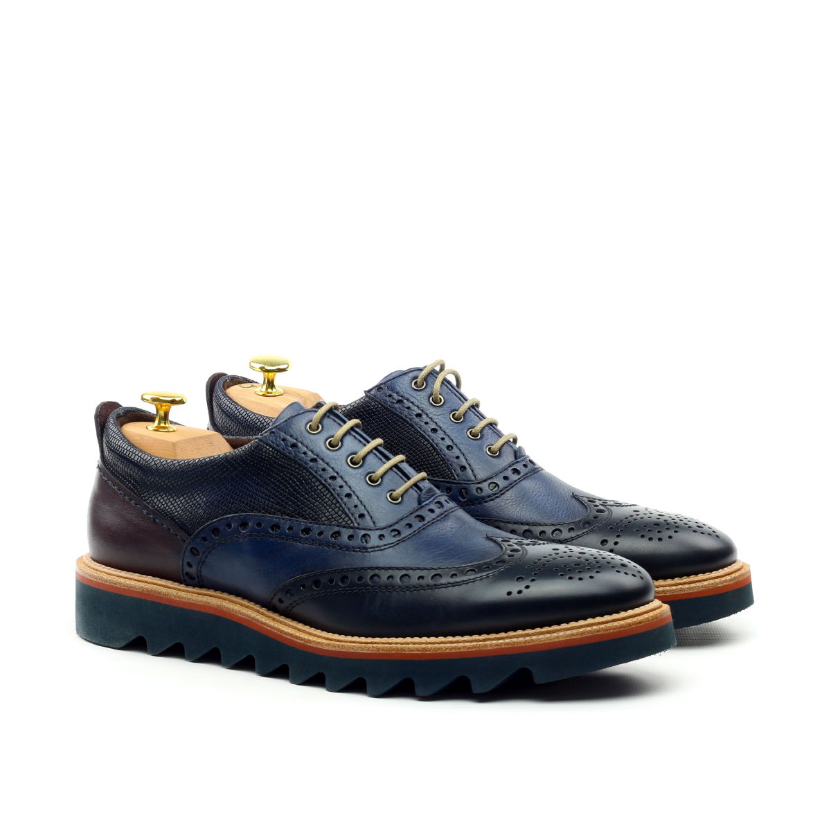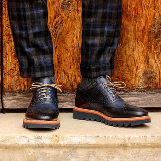 Ambrogio Men's Shoes Navy & Cherry Lizard Print / Calf-Skin Leather Wingtip Oxfords (AMBS2039-RTW)