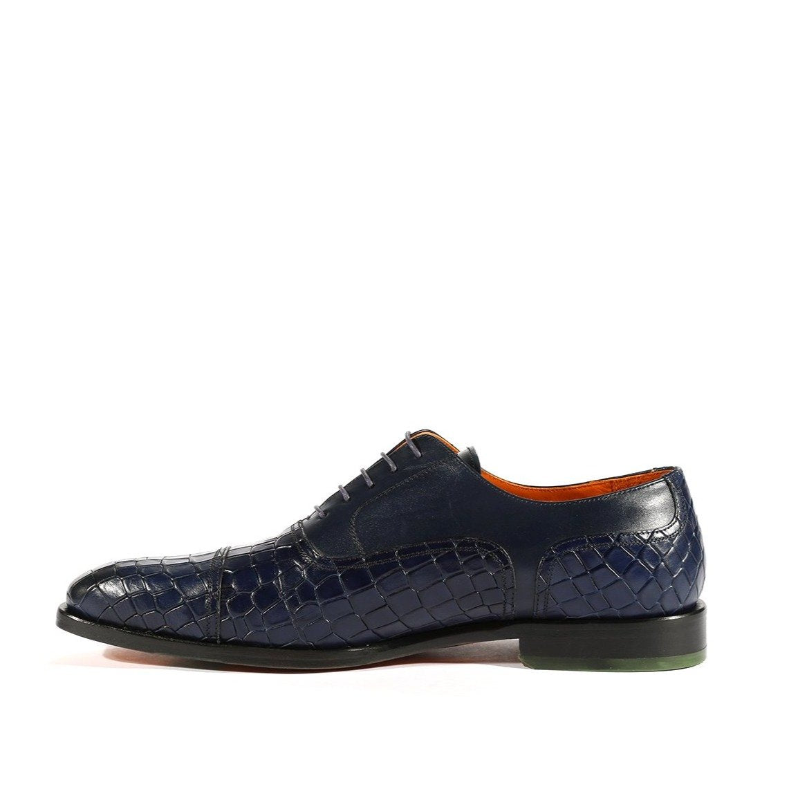 • Ambrogio Men's Shoes Navy Crocodile Print / Rubber / Calf-Skin Leather Cap Toe Oxfords (AMB2050)