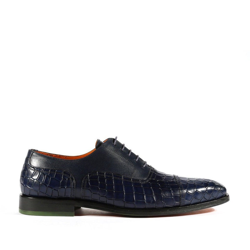 Ambrogio Men's Shoes Navy Crocodile Print / Rubber / Calf-Skin Leather Cap Toe Oxfords (AMBS2050-RTW)