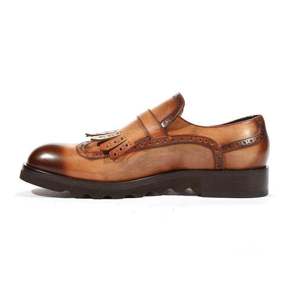 - Luxurious Cesare Paciotti Mens Buckhold Loafers Camel/Brown Two Tone Tamponato Cuoio Shoes (CPM5478)
