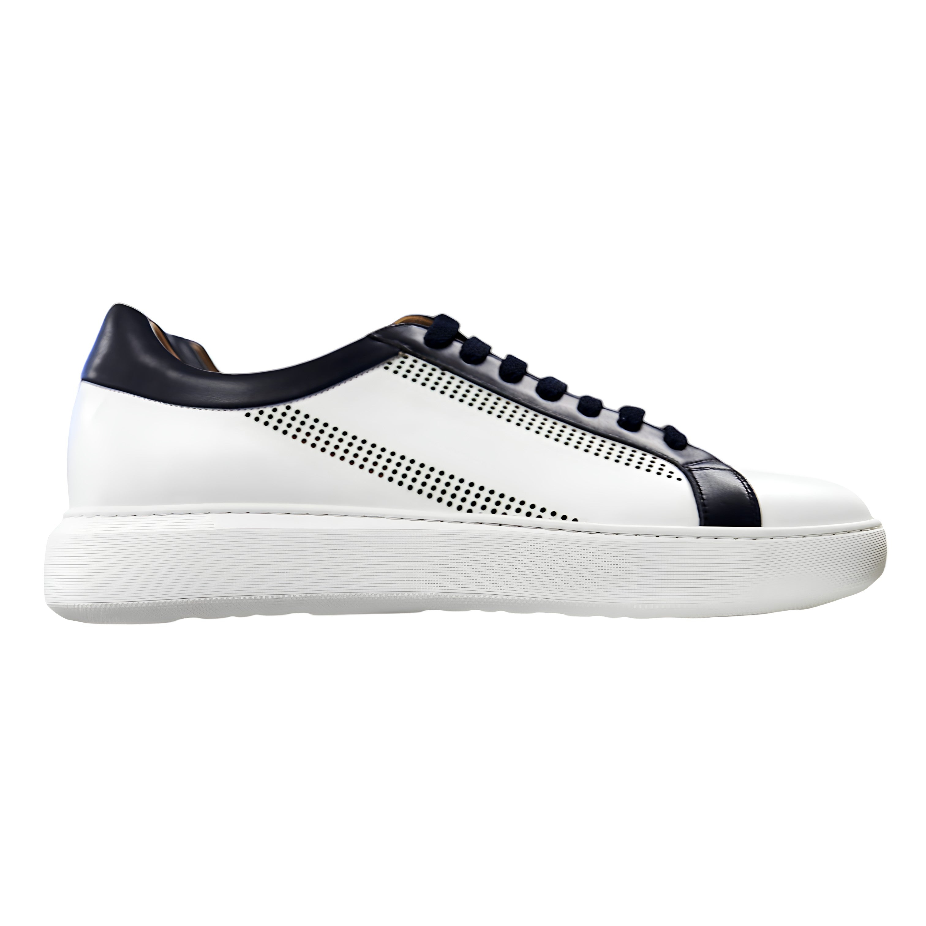 • Donatello Deron Men's Shoes White & Blue Calf-Skin Leather Casual Sneakers (DON1001)
