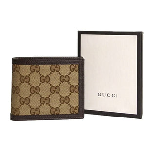 • Gucci 260987 525040 Men's Beige & Brown GG Canvas / Leather Bi-Fold Wallets (GGMW2022)