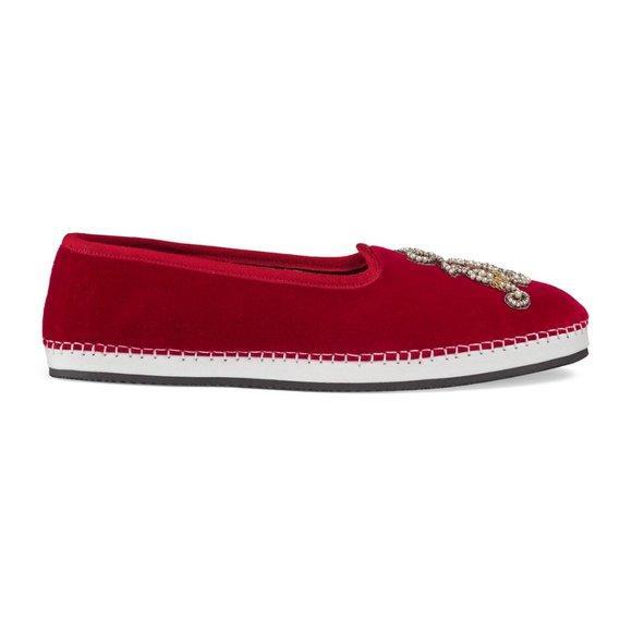 - Gucci 574881 FAS60 6472 Men's Shoes Red Velvet 'AM' Appliqué Slip-On Loafers (GGM1726)