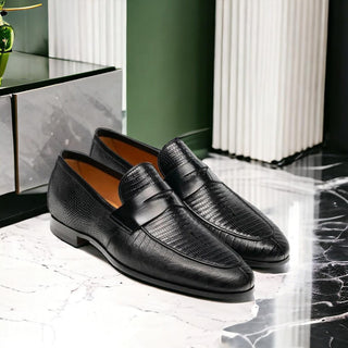 - Magnanni Vicente 23257 Men's Shoes Black Exotic Genuine Lizard Skin Classic Penny Loafers (MAGS1102)