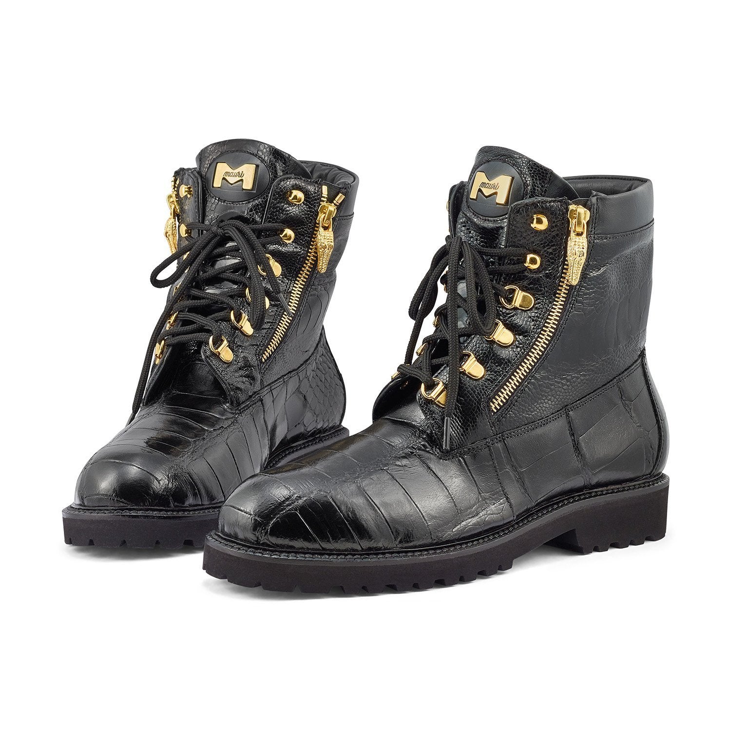 - Mauri 3017/1 Hunter Men's Shoes Black Exotic Alligator / Ostrich Leg Boots (MA5382)