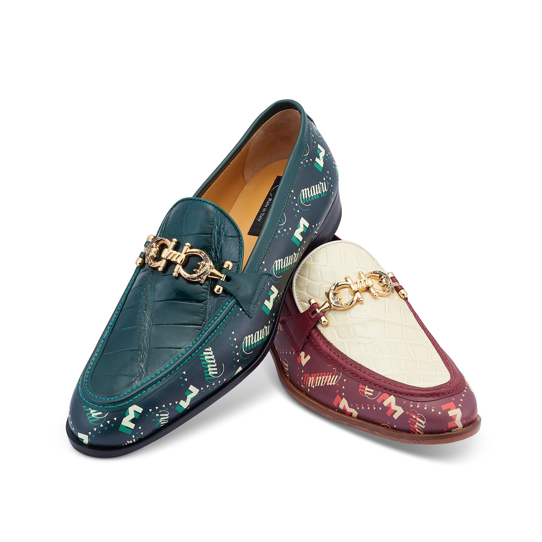 - Mauri 4951/1 Wealth Men's Shoes Hunter Green Exotic Alligator / Calf-Skin Leather Horsebit Loafers (MA5451)