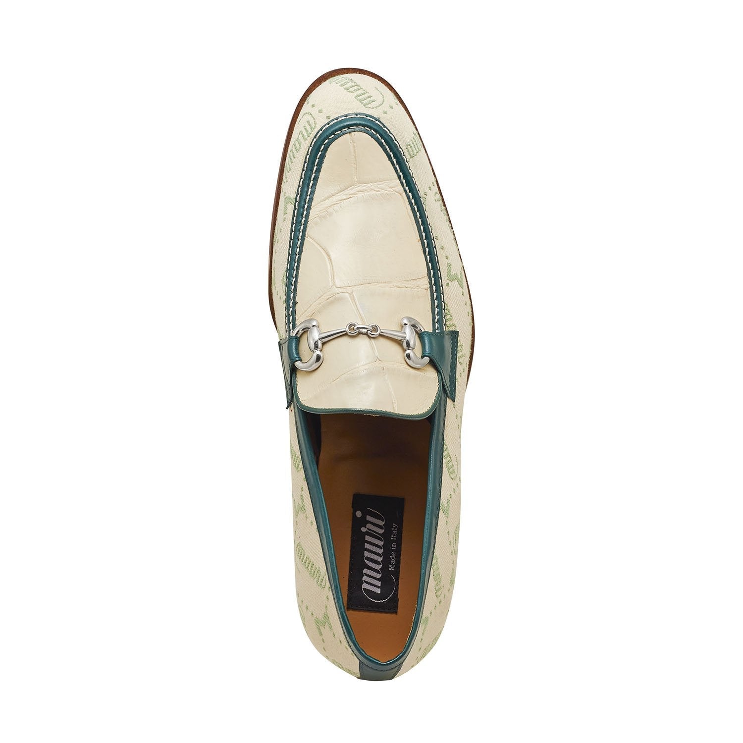 - Mauri 4983 Bahamas Men's Shoes Spring Clean, Cream & Hunter Green Exotic Alligator/ Fabric / Calf-Skin Leather Fabric Horsebit Loafers (MA5302)