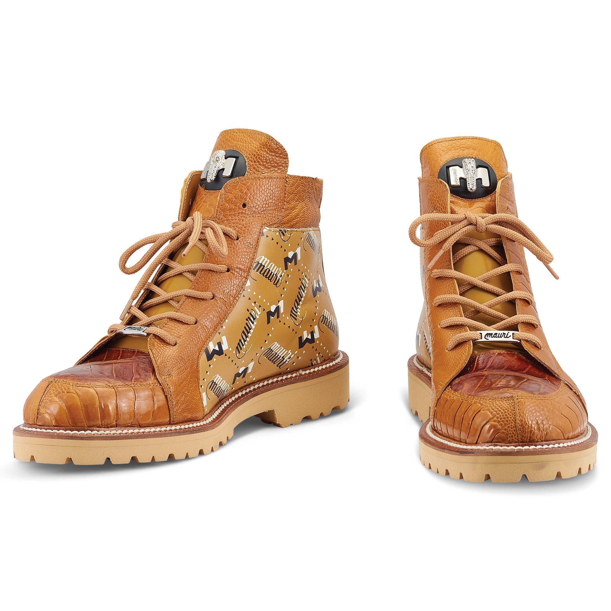 Mauri Highlander 4994 Men's Shoes Mustard Brown Exotic Ostrich Leg / Crocodile / Calf-Skin Leather Boots (MA5503) (Special Order)