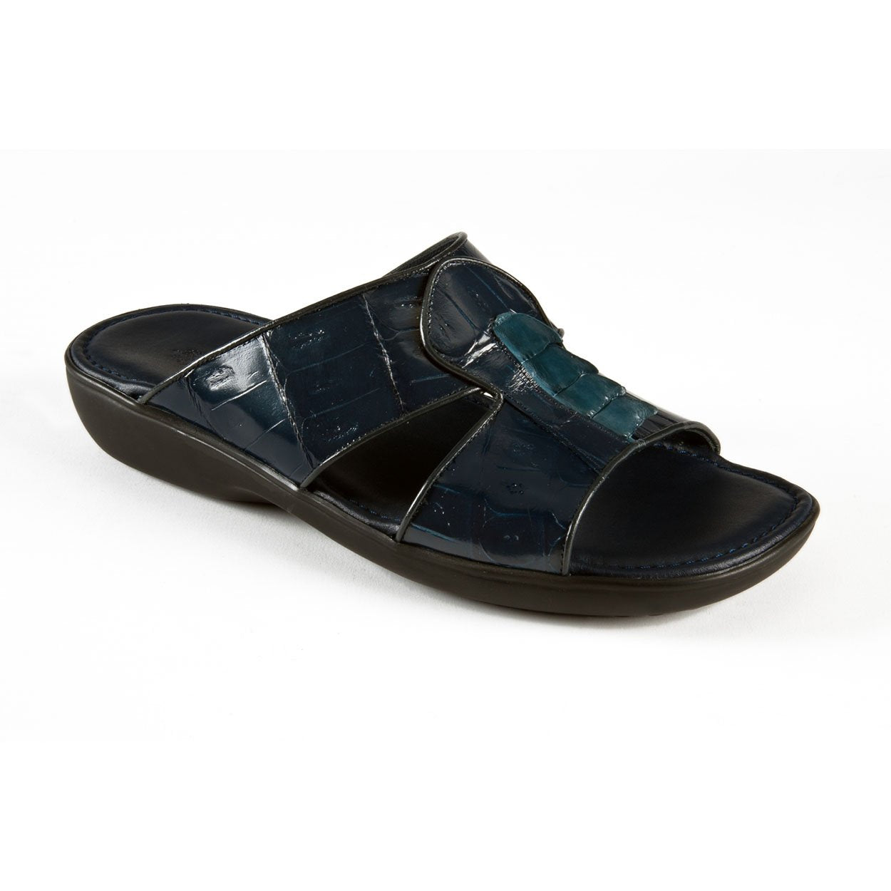 - Mauri Men's Designer Shoes Wonder Blue / Carribean Blue Exotic Caiman Crocodile / Hornback Casual Sandals 5054 (MAO1056)