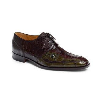 • Mauri Men's Shoes Brown & Green Exotic Ostrich Leg & Caiman Crocodile Oxfords 4787 (MA4510)(Special Order)