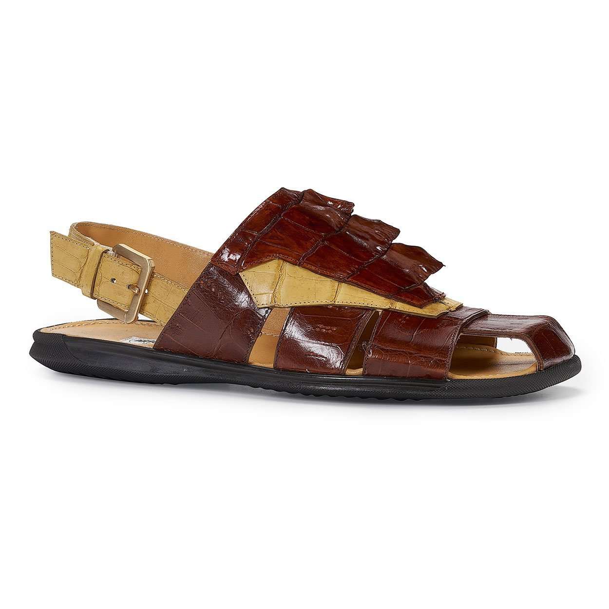- Luxurious, Handmade Mauri Men's Baby Croc & Hornback Crocodile Brown Sandals 5067(MA4922)(Special Order)