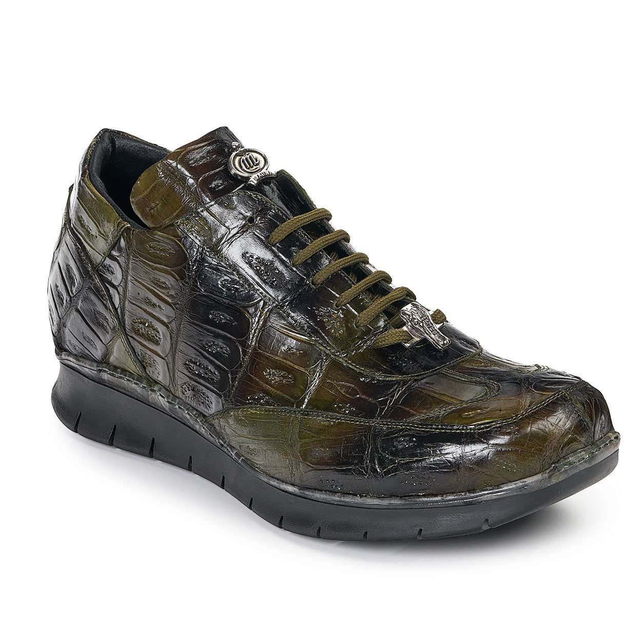 Mauri 8932 Men's Designer Shoes Exotic Skin Borromini Multi-Green Baby Croc & Nappa Leather Sneakers (MA4818) (Special Order)