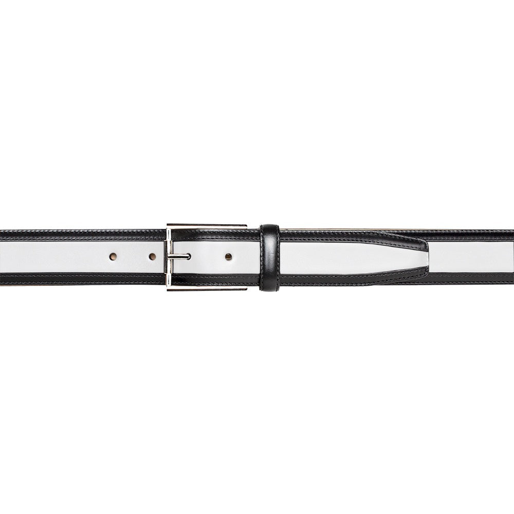 Mezlan AO11531 Black & White Two-Tone Calf-Skin Leather Men's Belt (MZB1228)
