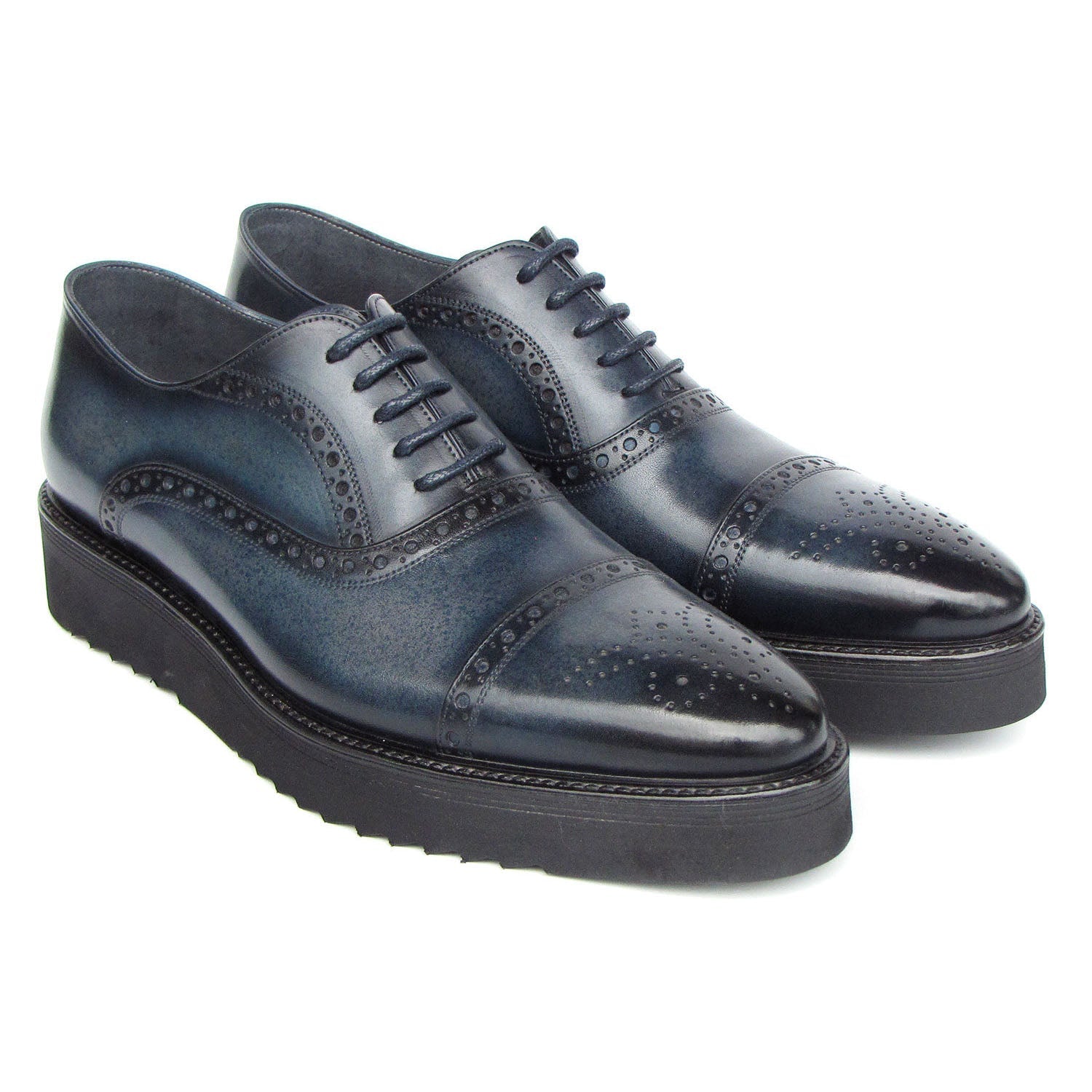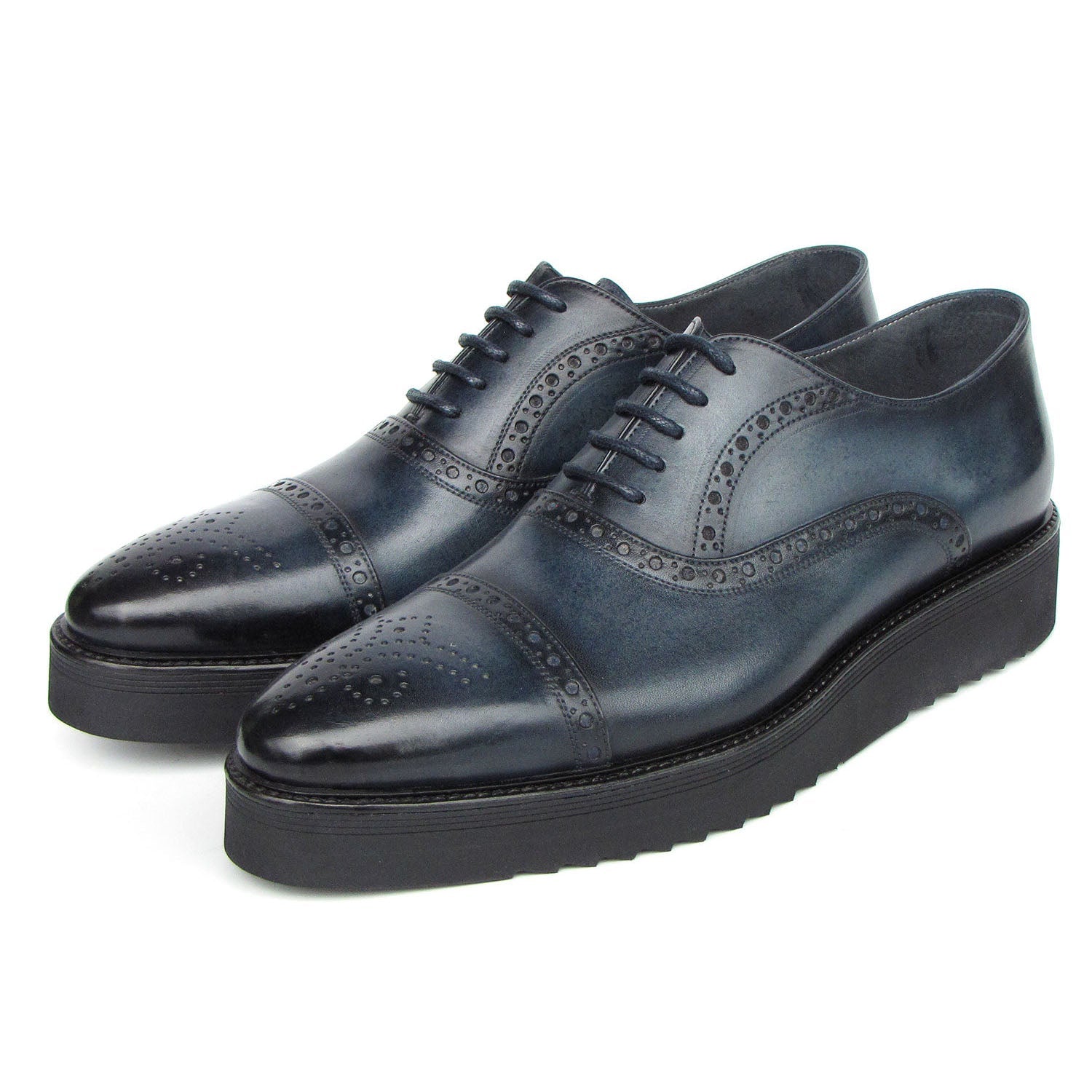 - Paul Parkman 285-NVY-LTH Men's Shoes Navy Hand Painted Leather Casual Cap Toe Oxfords (PM6406)