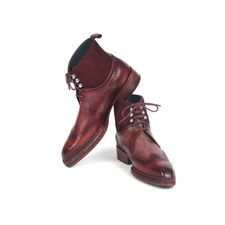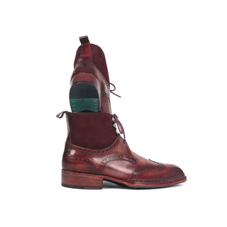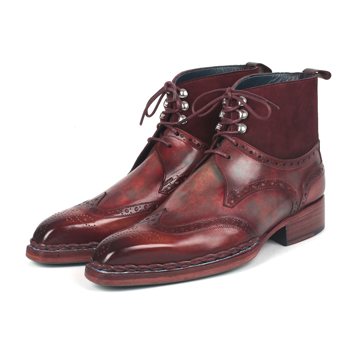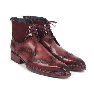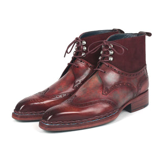- Paul Parkman 8509-BUR Men's Shoes Burgundy Suede / Calf-Skin Leather Norwegian Welted Wingtip Boots (PM6348)