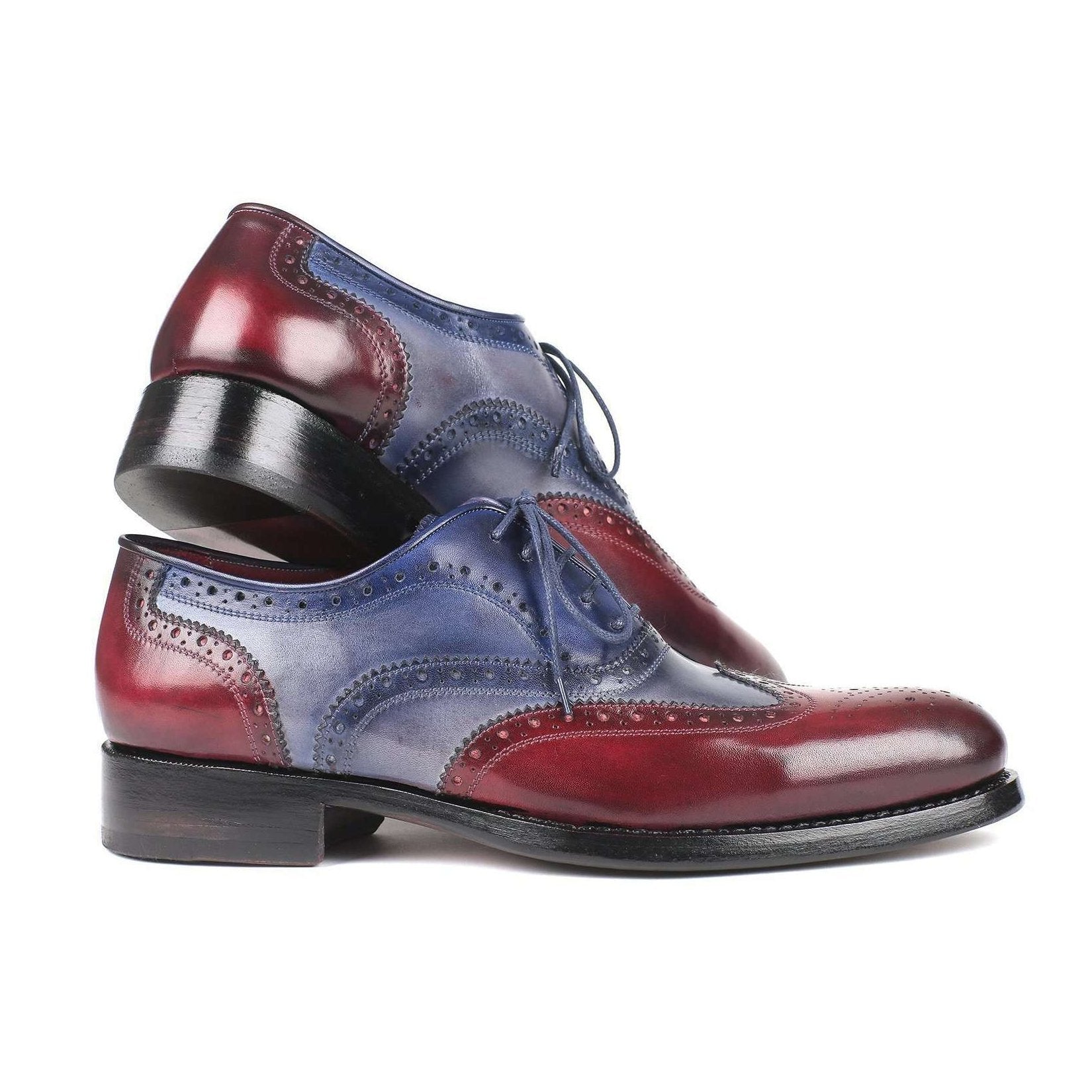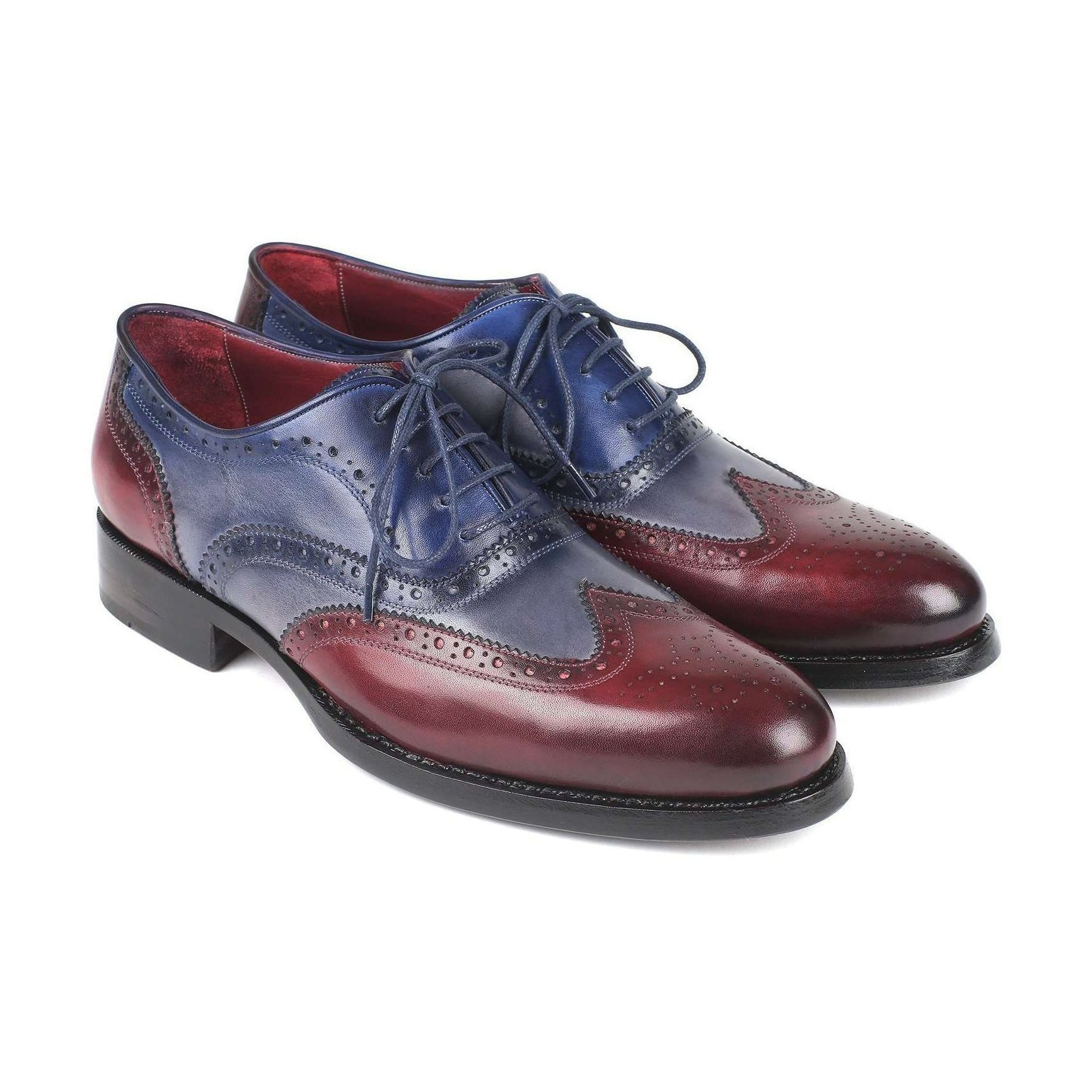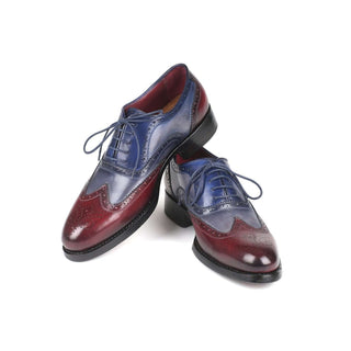 - Paul Parkman Luxury Handmade Shoes Men's Bordeuax Grey & Blue Calfskin Oxfords BR027GRBL (PM5700)