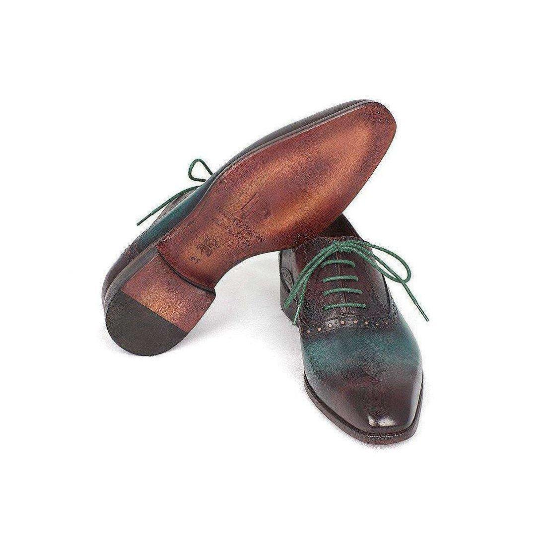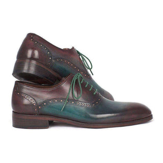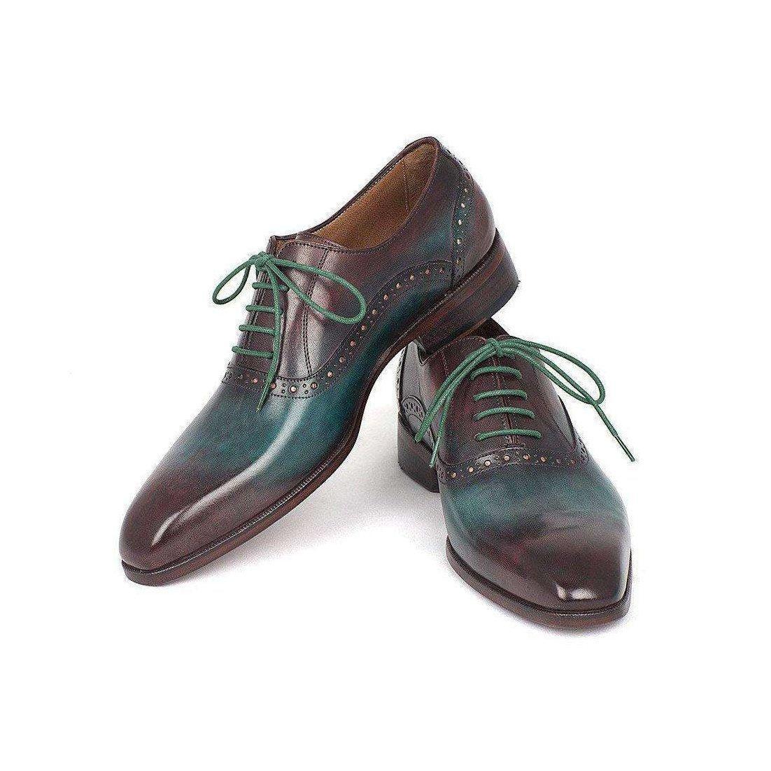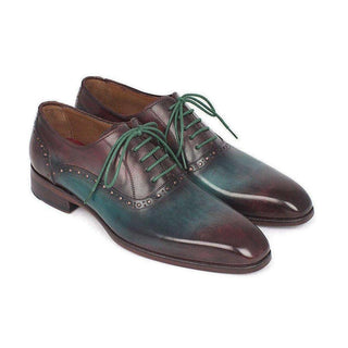 Paul Parkman Handmade Designer Shoes Men's Green & Bordeaux Plain Toe Oxfords (PM5409)