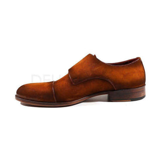 • Paul Parkman Luxury Handmade Shoes Men's Designer Shoes Camel Suede Captoe Monkstraps Loafers (PM2009)