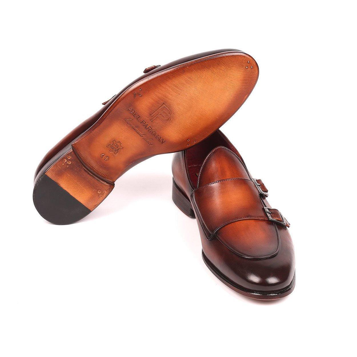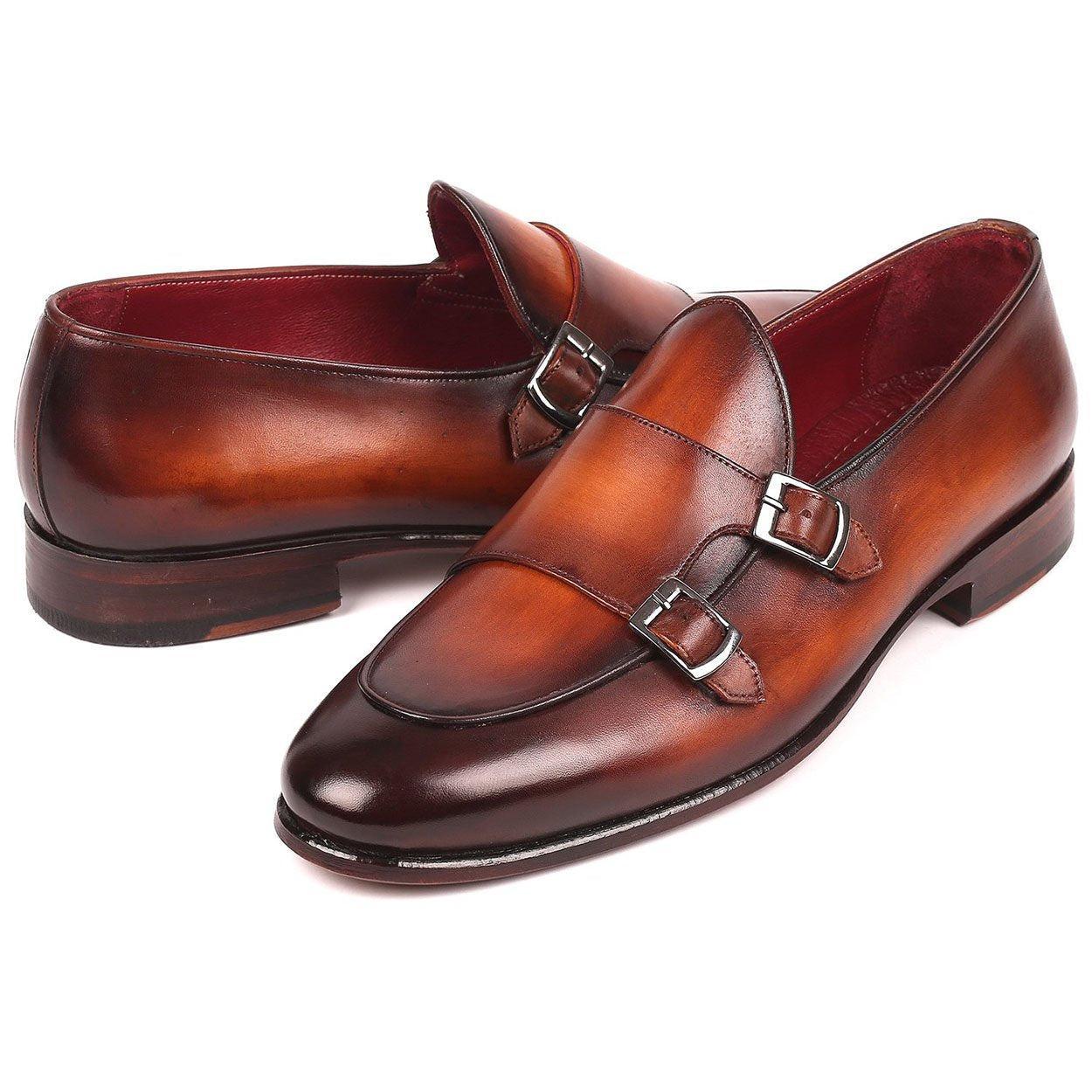 - Paul Parkman Men's Brown Calf-Skin Leather Double-MonkStraps Loafers HT61BRW (PM6159)