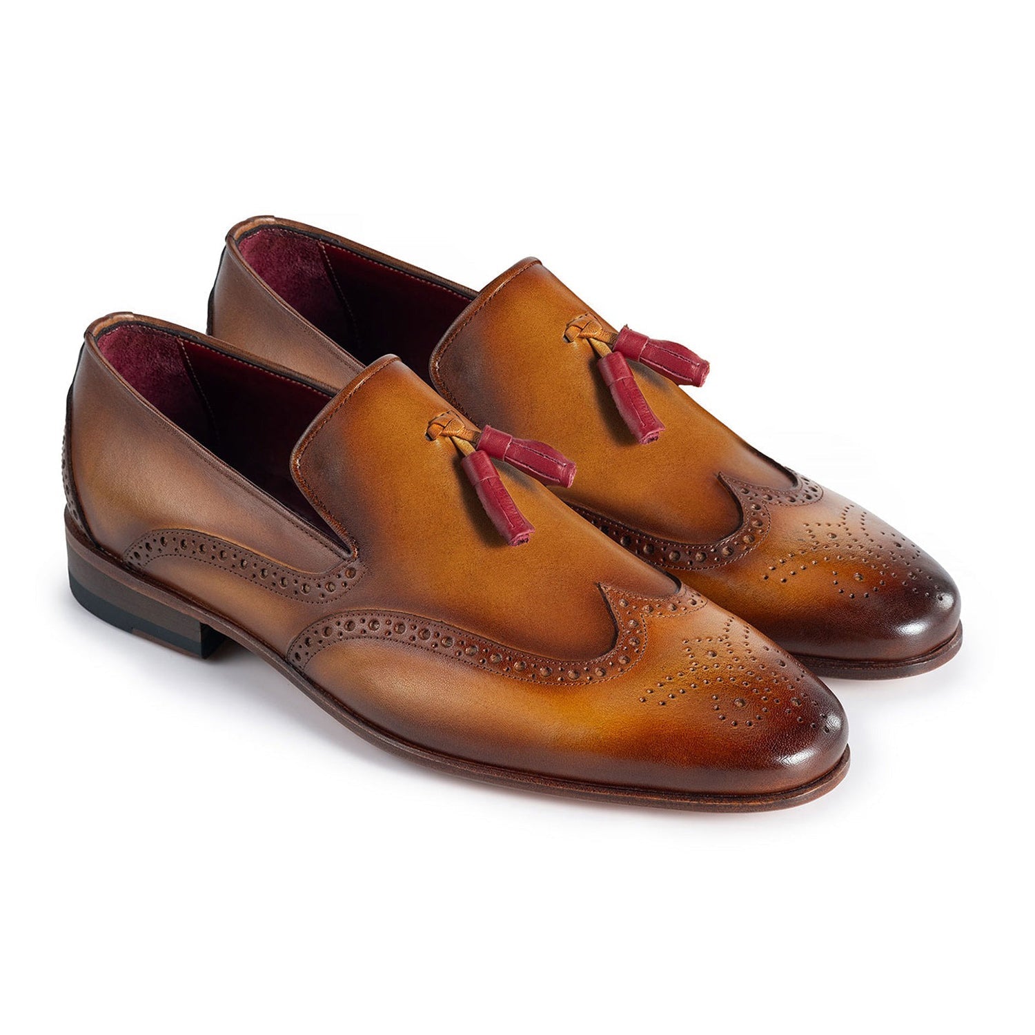 Paul Parkman Men's Handmade Shoes Calf-Skin Leather Wingtip Tassels Loafers (PM6435)