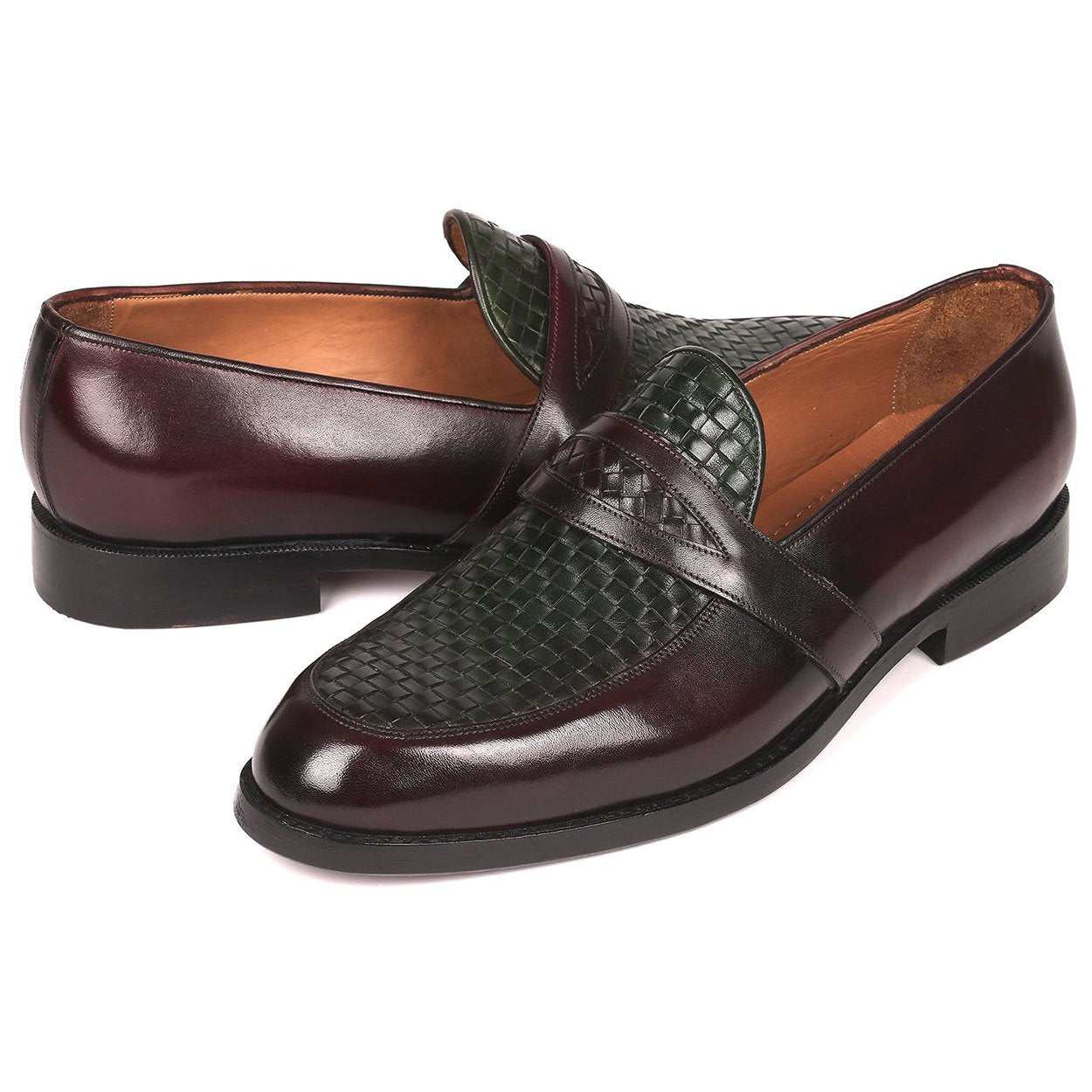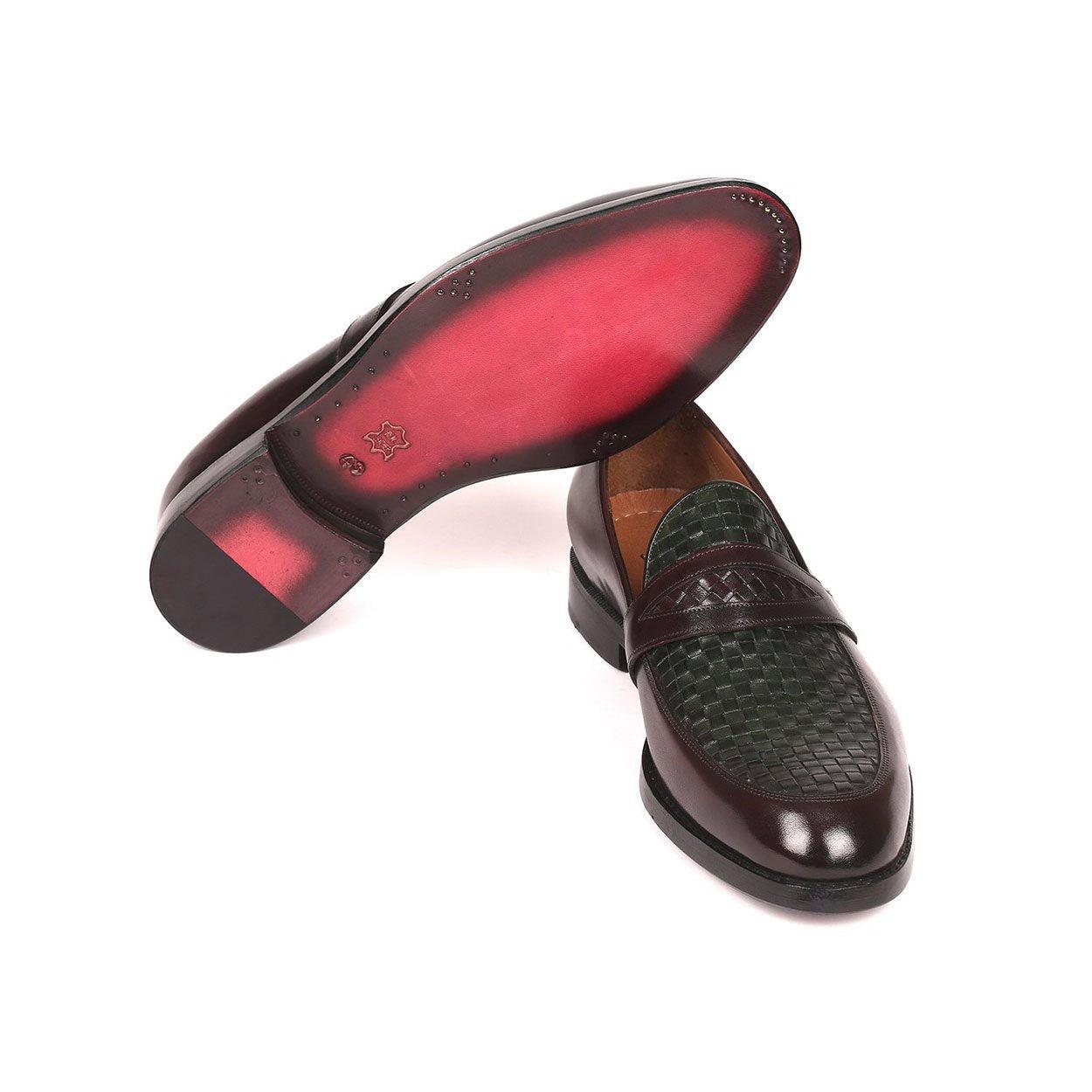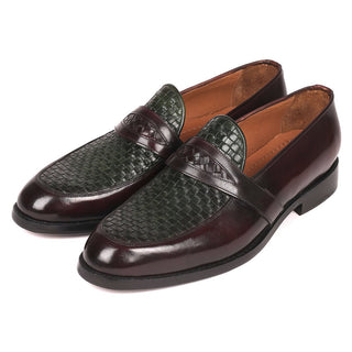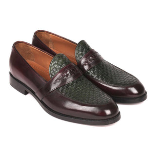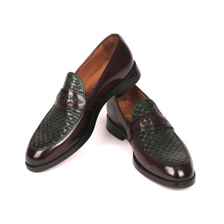 - Paul Parkman Men's Shoes Green / Brown Woven & Calf-Skin Leather Slip-On Loafers 548LF832 (PM6208)