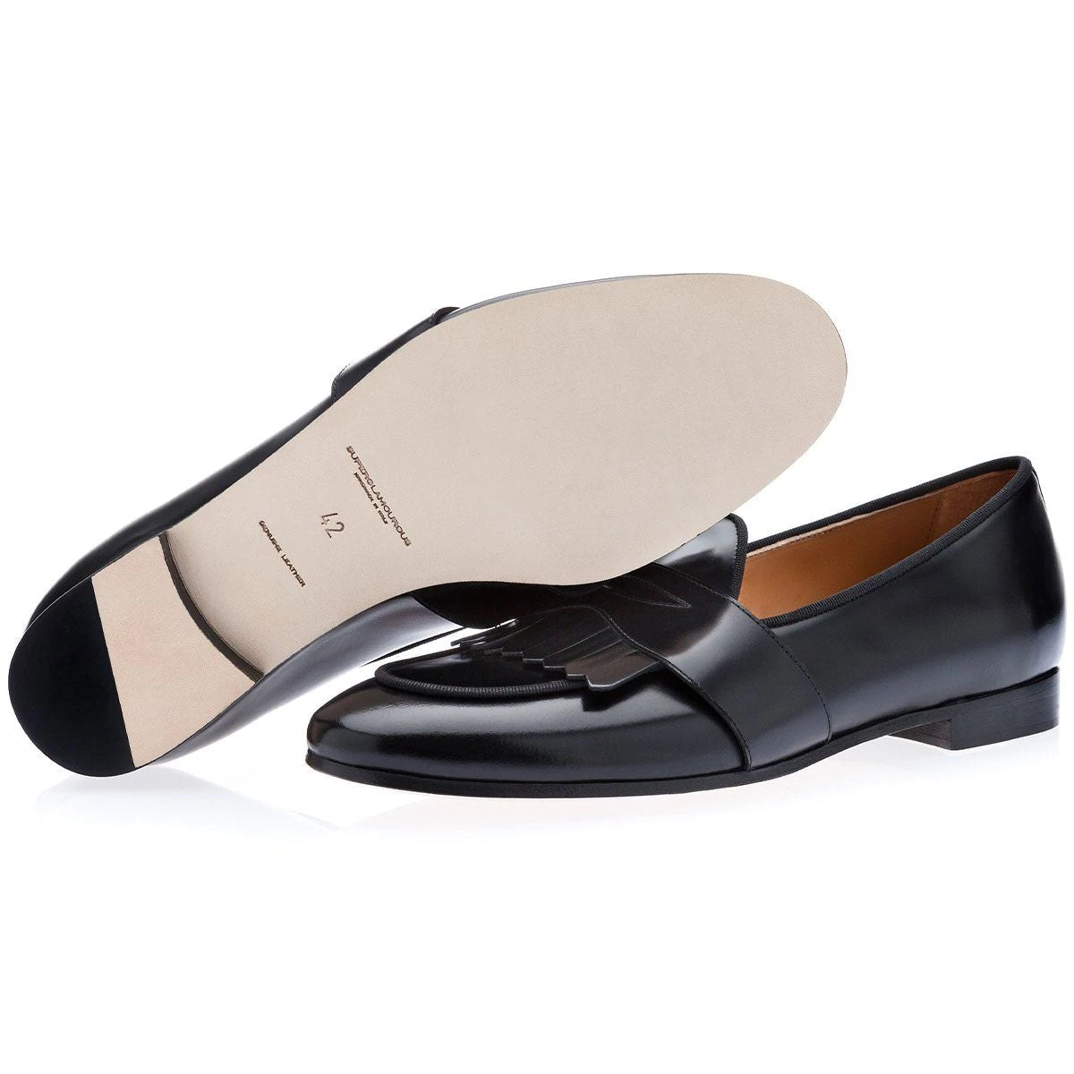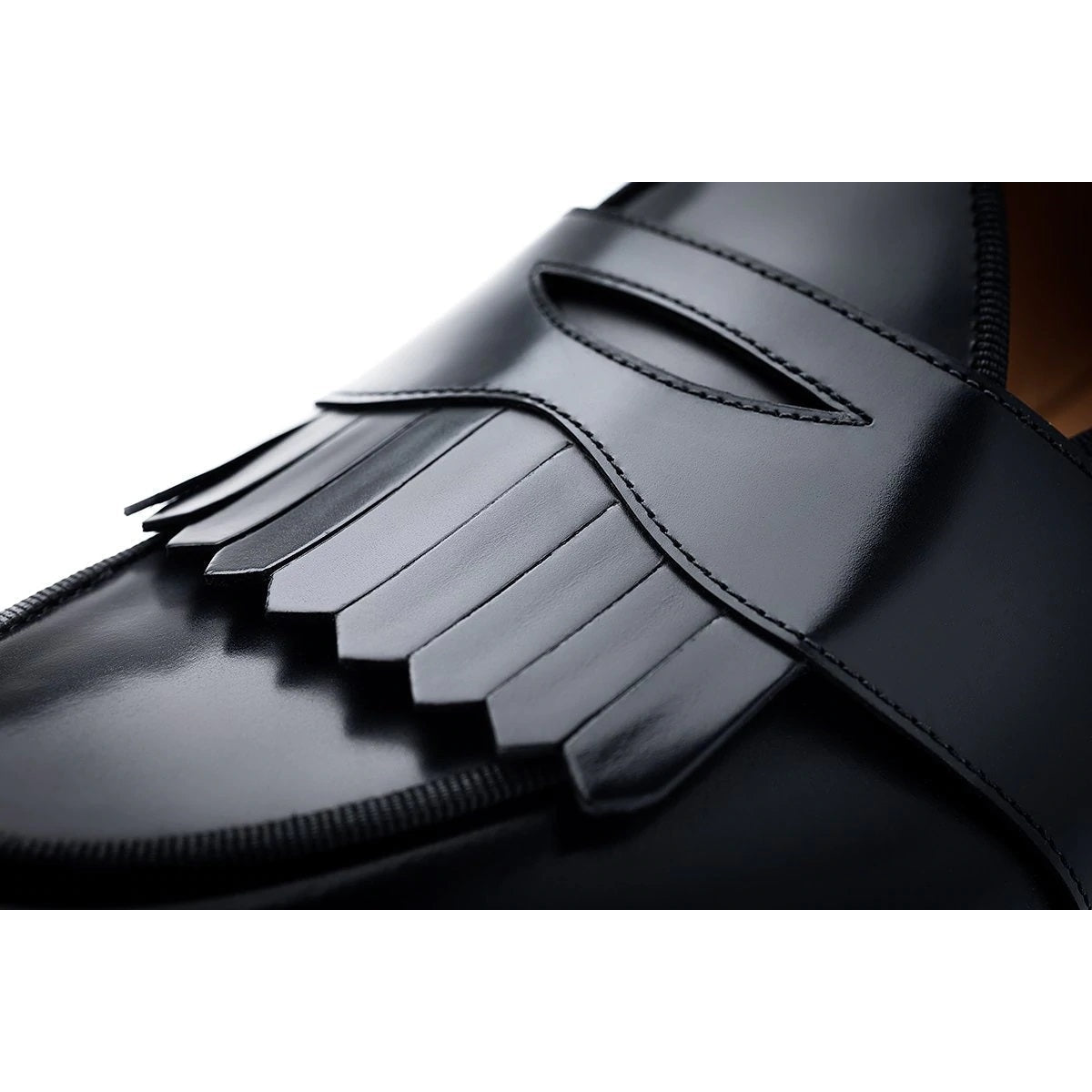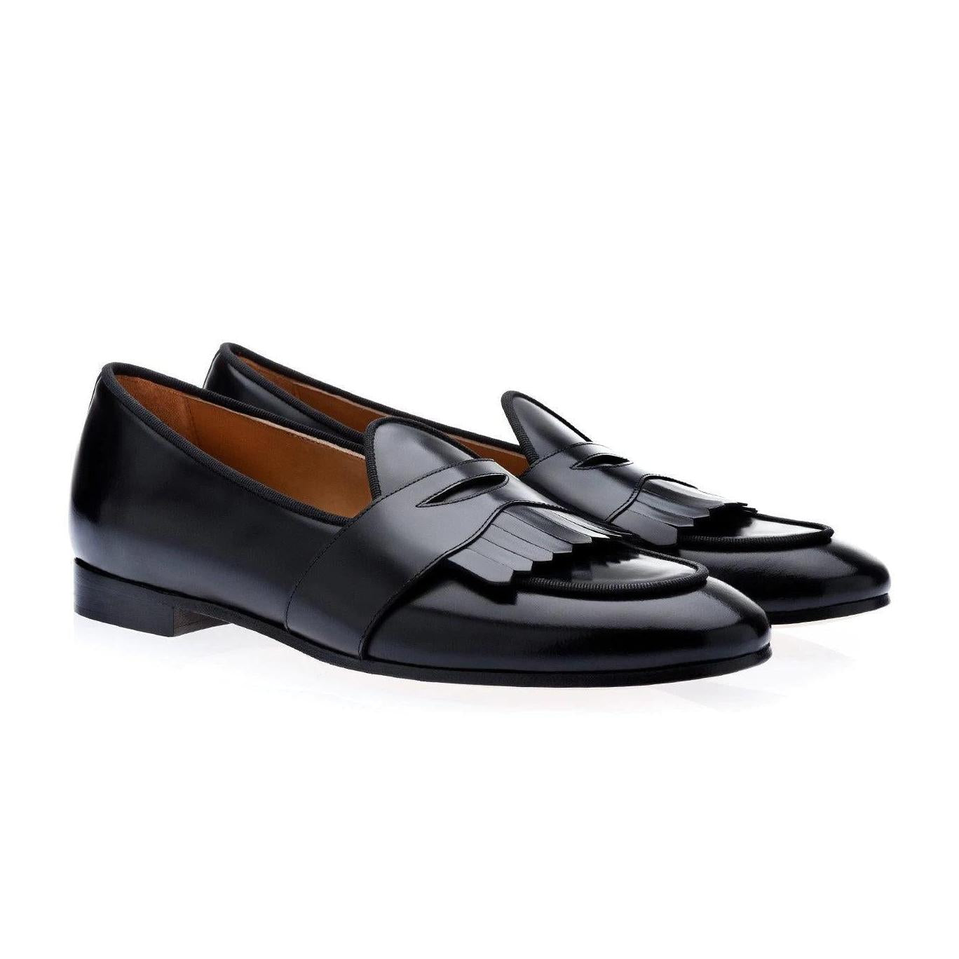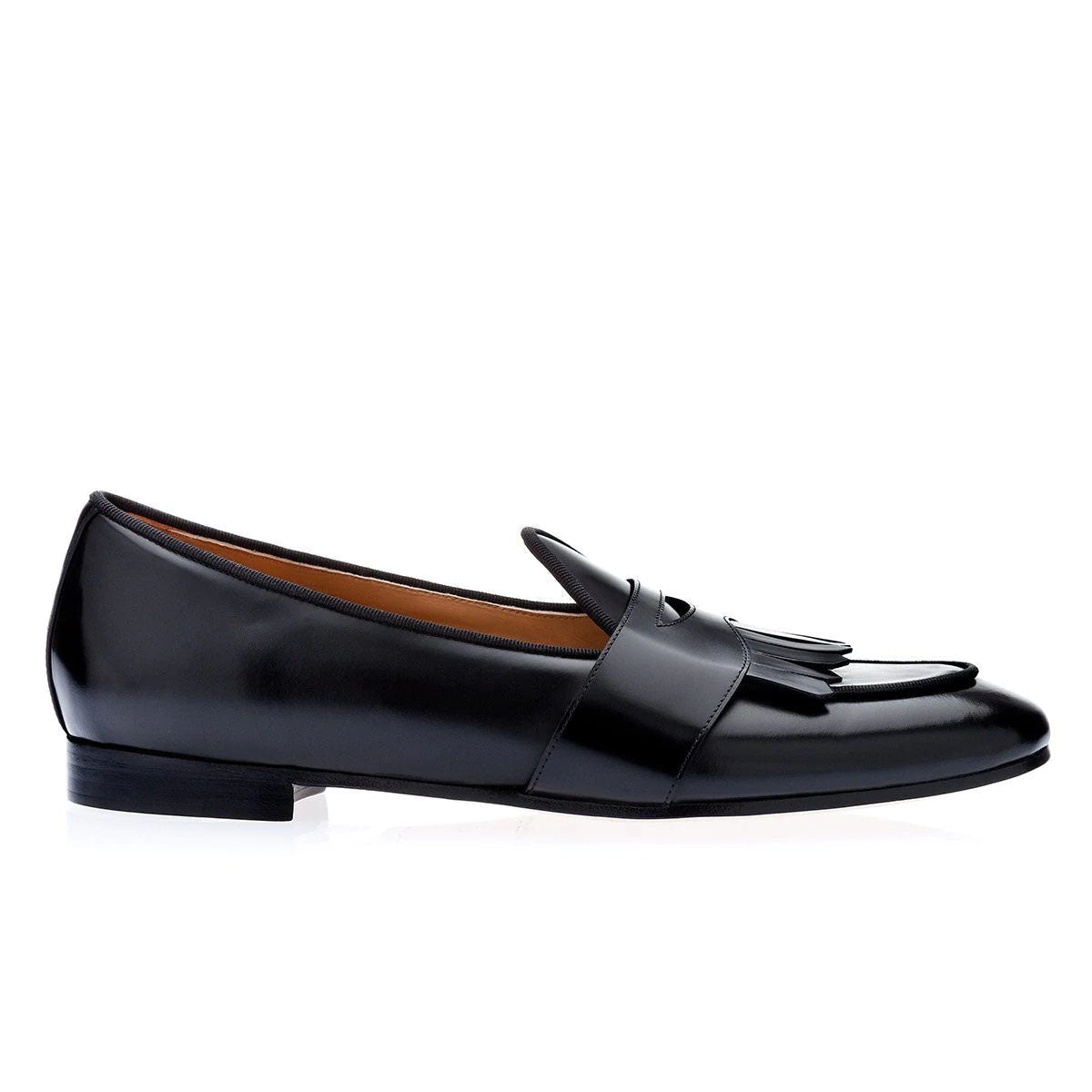 SUPERGLAMOUROUS Tangerine 10 Cordovan Men's Shoes Black Polished Leather Penny Loafers (SPGM1055)
